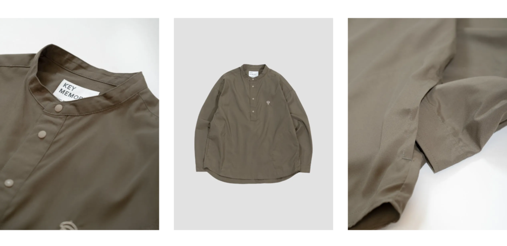 サイズ1は既に完売しているバンドカラースナップシャツ。すっきりとした見た目ですが、きちんと感もあり、クラシカルな印象に仕上げてくれます。スナップボタン部分を開けて、インナーのTシャツなどを見せるカジュアルコーディネートの雰囲気もお楽しみ頂けます。両サイドに配されたポケット、プルオーバー型のスモックのようなデザインは、レイヤードスタイルにもマッチし、他のアイテムとの組み合わせの幅を広げてくれます。シンプルかつ洗練されたスタイルを演出するおとができるシャツ。