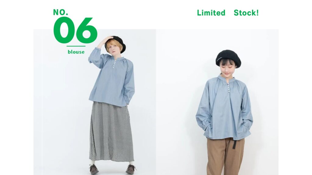 手作業がしやすいようにもしております。身幅はゆったりとり、着丈はルーズな印象にならないよう、スリットと裾のカットを前後で変えております。透け感は無く、柔らかさもございます。