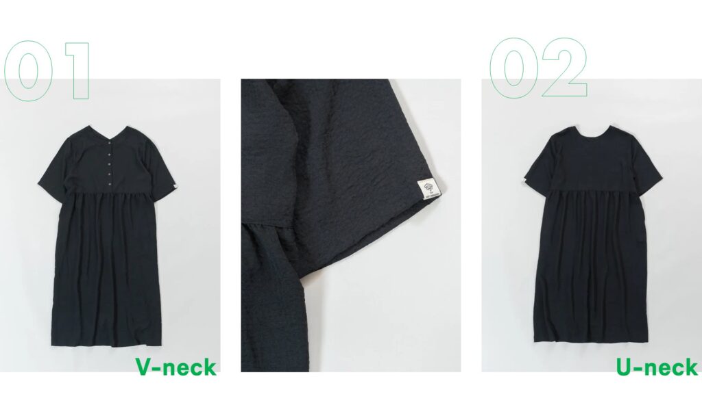 VネックとUネックの前後2WAYで着用できる、着心地が気持ちいいワンピース。サイズ0は既に完売しております!前と後ろで2つのパターンの着方が叶うワンピース。夏は暑くて、コーディネートを考えるのも一苦労ですが、
