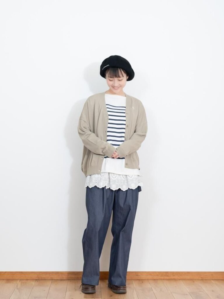 ワイドパンツよりメリハリがあり、ボリュームのある足元と合わせて頂いてもお楽しみ頂けます。