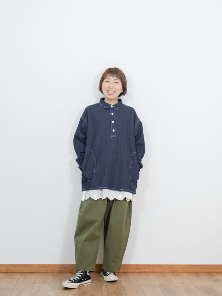 トップスとしても、ボタンを空けて羽織としてもお楽しみいただけます。