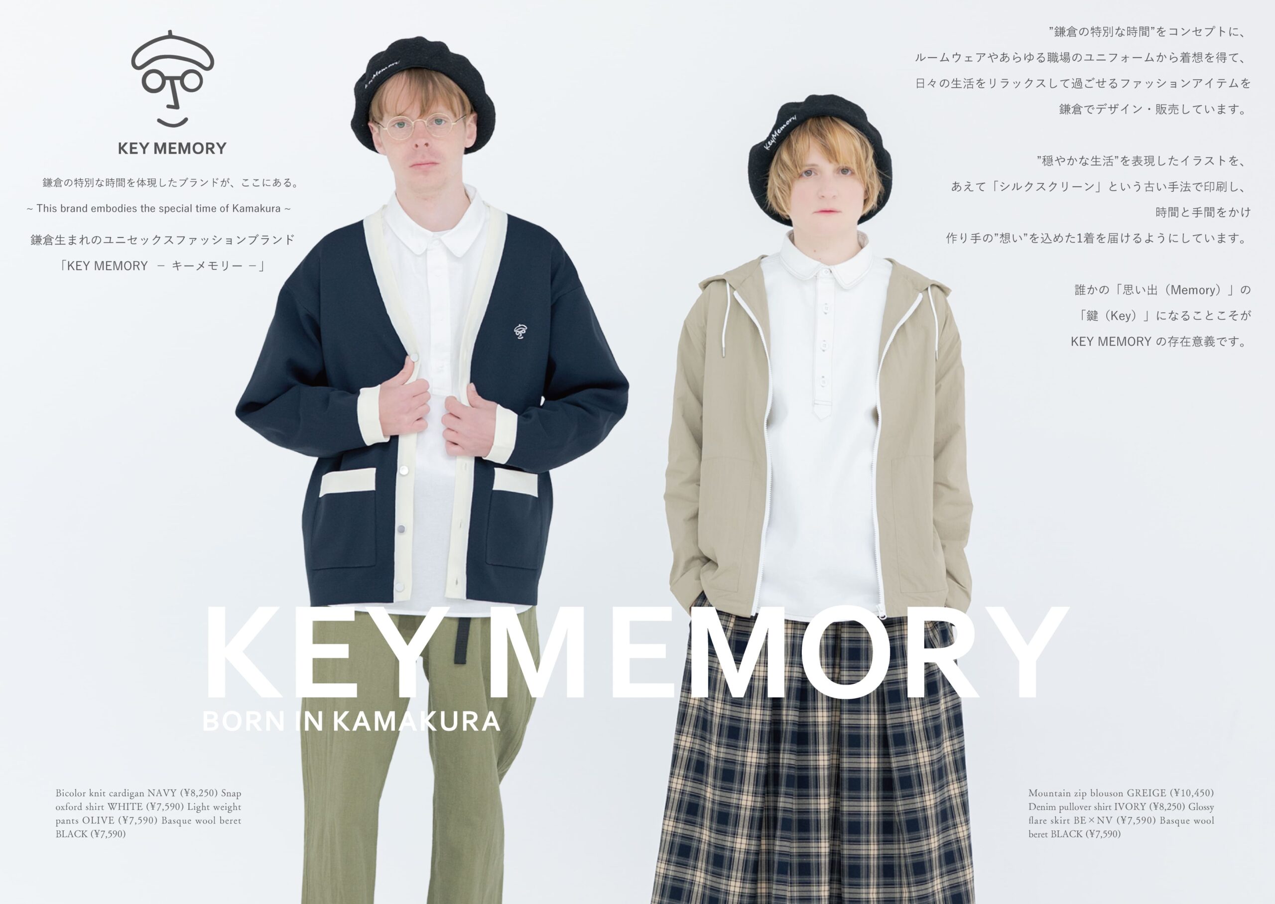 誰かの「思い出(MEMORY)」の「キー(KEY)」になることこそが、KEY MEMORY(キーメモリー)の存在意義です。鎌倉にある洋服のお店でセレクトショップだと勘違いされることもありますが、KEY MEMORYの全てがオリジナル商品で、唯一無二の鎌倉発ファッションブランドです。