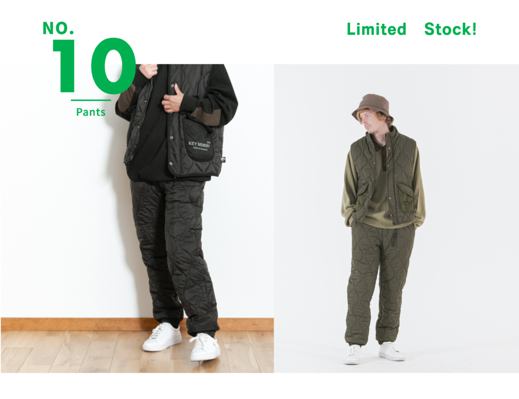 【KEY MEMORY GOLF】保温性と動きやすさを兼ね備えた、中綿入りジョガーパンツ。上品な光沢のあるキルティング素材に中綿を入れ、軽量ながらしっかり暖か。防寒パンツ特有の重さやごわつきを抑え、長時間でも快適な履き心地です。裾にかけて自然に細くなるジョガーラインで足元すっきり。ウエストは付属ベルで調整可能、ゆったり設計で重ねばきにも対応します。同素材のキルティングベストとセットアップも可能。コースからタウンユース・スポーツ観戦などまで活躍する、KEY MEMORY GOLFらしいアスレジャーアイテムです。