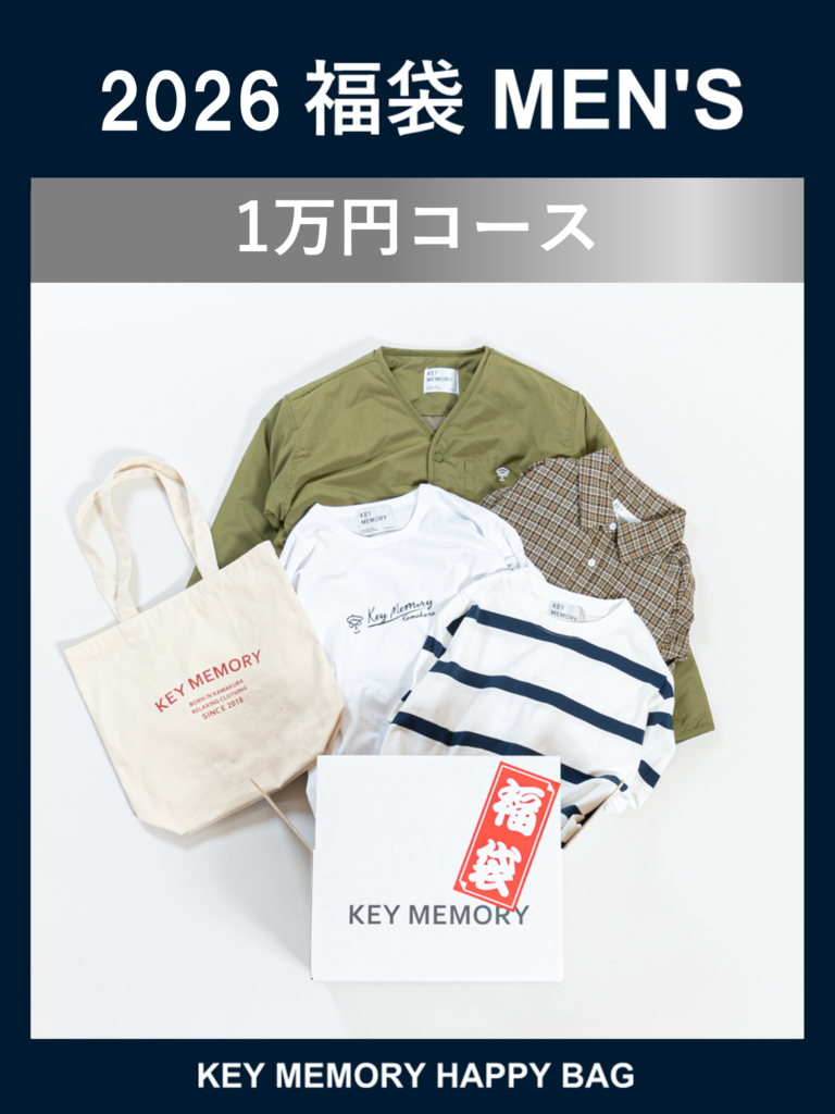2026年福袋限定!メンズ福袋2万円コース確定で入っているアイテムは、先程紹介した「中綿ジャケット」に加えて、どんなコーディネートにも合わせやすい「ラグランスウェット」が確定で入っています!KEY MEMORY通常販売では未発売デザイン!福袋限定で、ラグランデザインの裏起毛スウェットをご用意致しました!アウターを羽織ると一見シンプルデザイン。定番スウェットが、ガラッと雰囲気の変える事ができるラグランスリーブ。色合いを合せやすく、多くの方にご愛用頂けるNAVY×杢ナチュラルグレーの配色です。リラックス感あるスウェットが一気にコーデの主役となります。身幅や肩回りもゆったりしており、着心地も抜群です。首元や袖口、裾のリブは硬く厚手過ぎないバランスです。さらに、裏起毛は大変滑らかな肌触りでストレスフリー。おうち時間にもぴったりの生地です。KEY MEMORYではユニセックスでお楽しみ頂けますのでお見逃しなくご覧下さいませ。