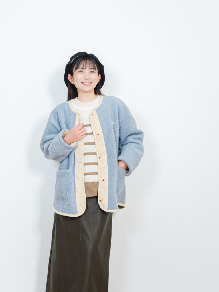 2026年福袋限定アイテム!レディース福袋に確定で入っているアイテムは「ボアジャケット」。今年のレディース福袋の目玉アウターは“大人気素材×カラー”を使用した、福袋オリジナルデザインをご用意しております。ジャケットで人気のボア素材に、コーデユロイ生地でパイピングを施したアクセントデザインに、KEY MEMORYならではのキレイ色BLUEを組み合わせた、冬のお出かけが楽しくなる1枚です。軽さと柔らかい着心地のボア素材を使用し、ボックスシルエットがボトムスを選ばずバランスがお取り頂きやすくなっております。アーム部分はゆったりとしたデザインのインナーとも重ね着しやすくなっており、袖口裏には、コーデュロイ生地を貼り付けてますのでロールアップしてもおしゃれ見えします。ポケット付き・大き目マーブルボタンもアクセントとなります。メンズ福袋アウターとのカラー・デザインが異なりますので、どちらもお見逃しなくご覧下さいませ。