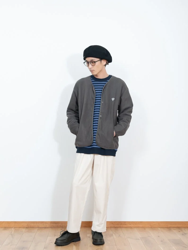裾が少し窄まったデザインの為、高身長さんはソックス合わせや、ハイカット・ボリュームのある足元と合わせてもオススメです。低身長さんはルーズになりにくいフルレングス丈で、生地は厚手では無い為、細目のロールアップをしてもお楽しみ頂けます。