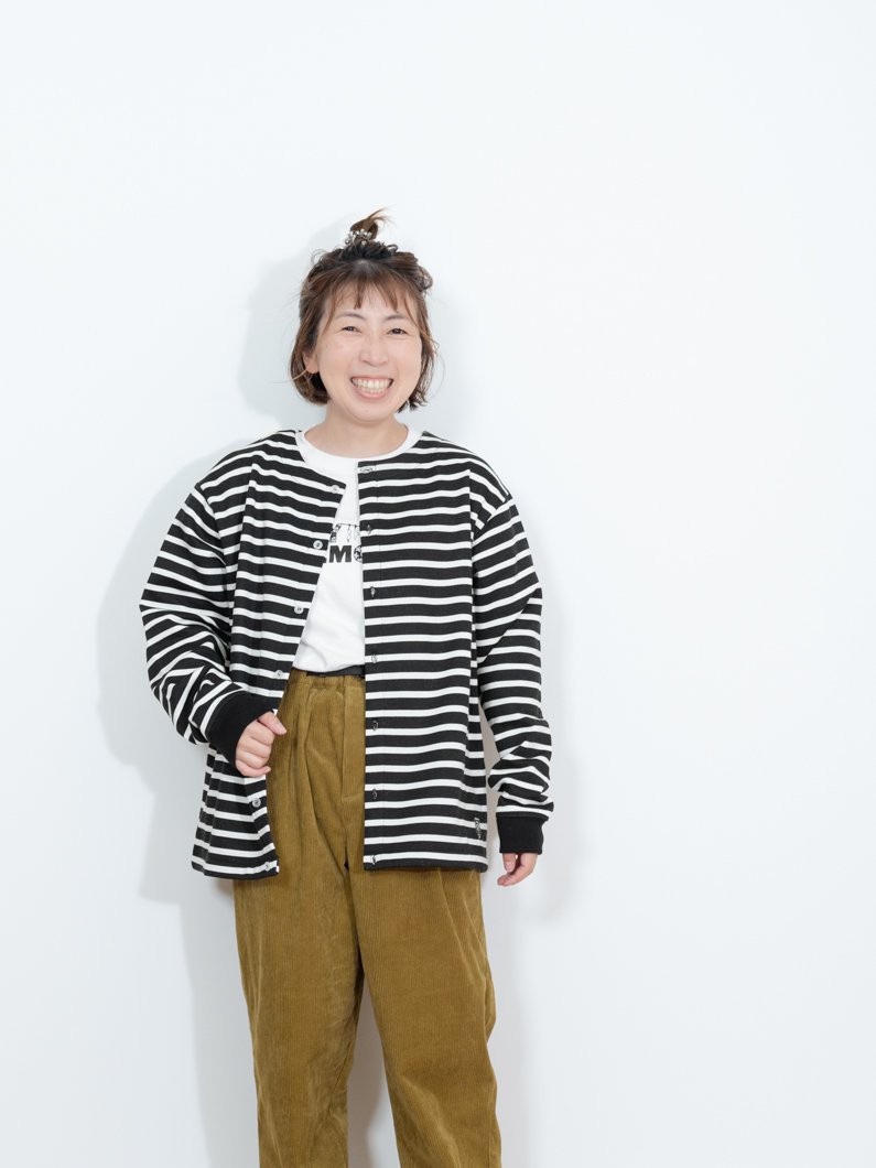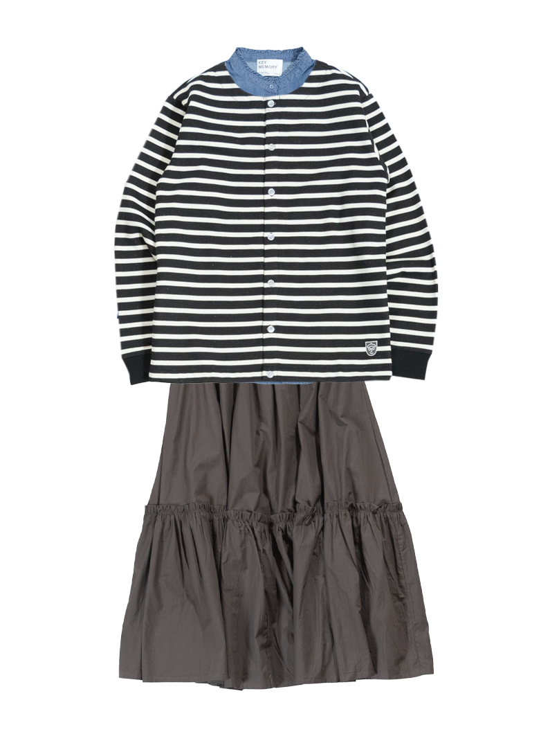 ボーダー柄のカーディガンに合わせることでカジュアルの中にさりげなく可愛いさをプラス。