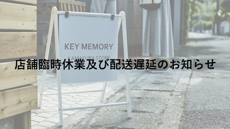 店舗臨時休業及び配送遅延のお知らせ いつもKEY MEMORYをご愛顧下さいまして誠にありがとうございます。誠に勝手ながら、下記の日程を冬季休業とさせていただきます。ご不便をおかけいたしますが、何卒ご理解お願い申し上げます。 KAMAKURA STO […]