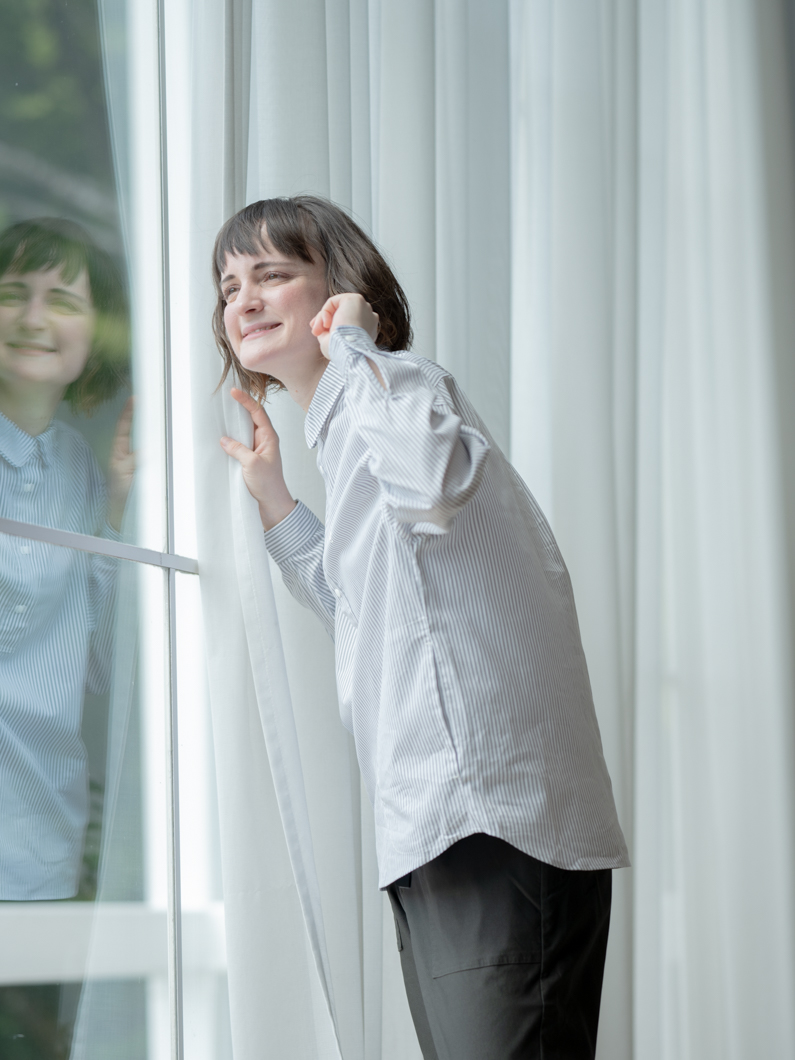 フェミニンな印象を与えるふんわりとした袖