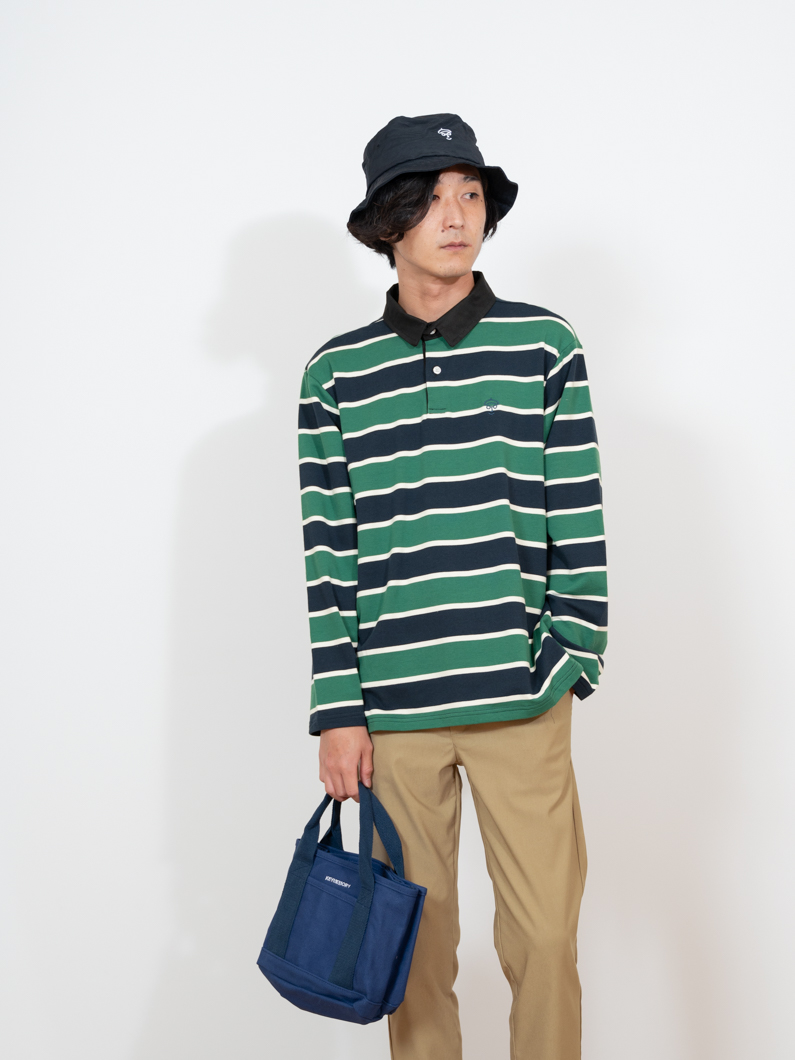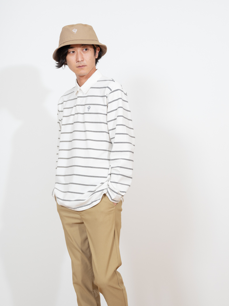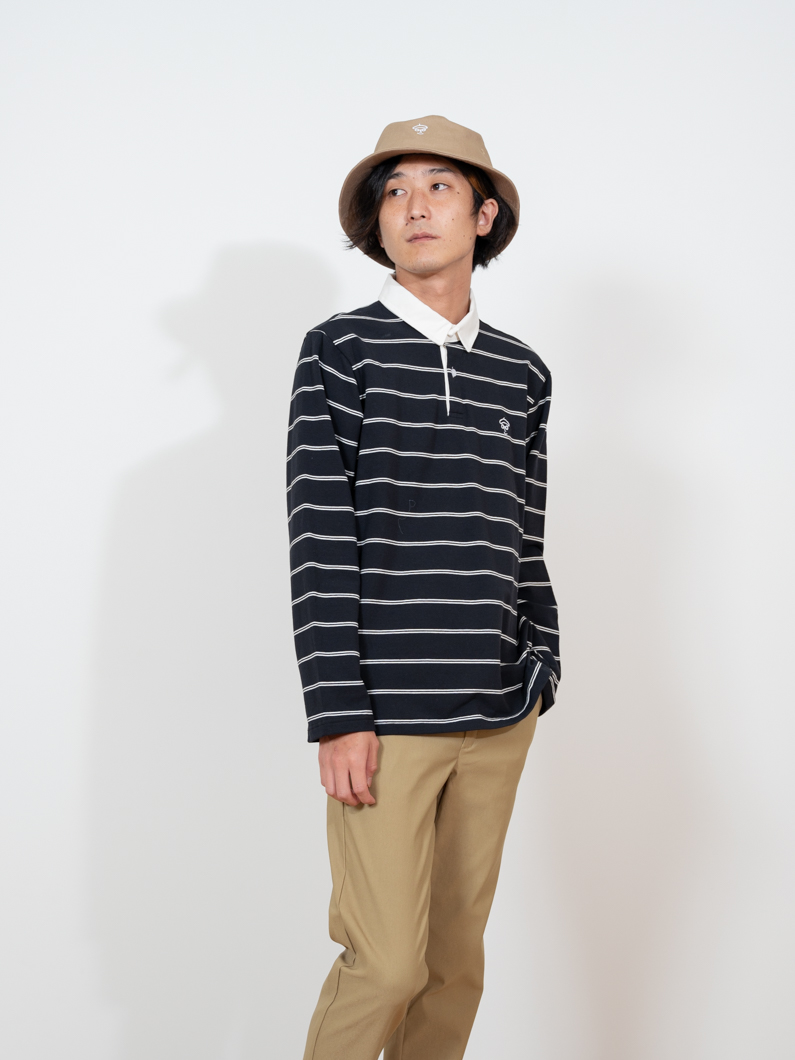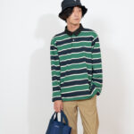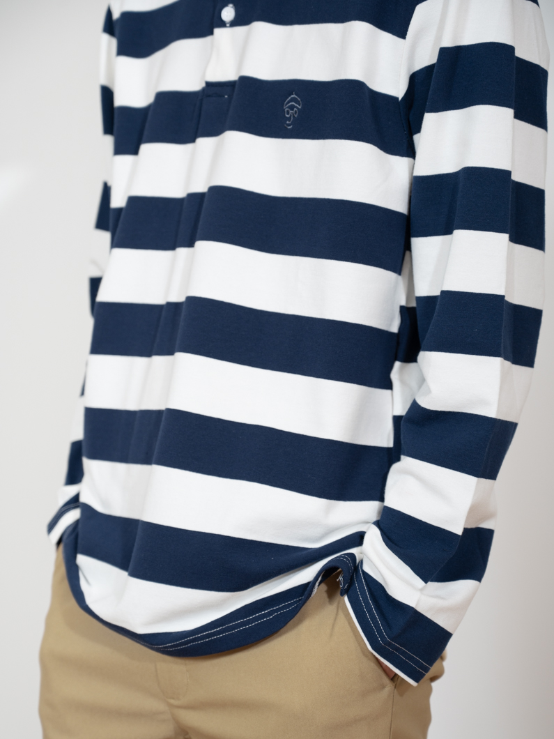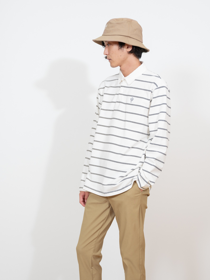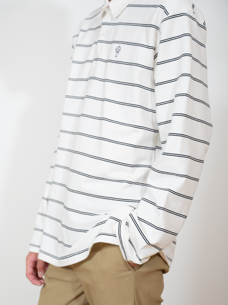 ストレッチ性のあるボーダー長袖ポロ