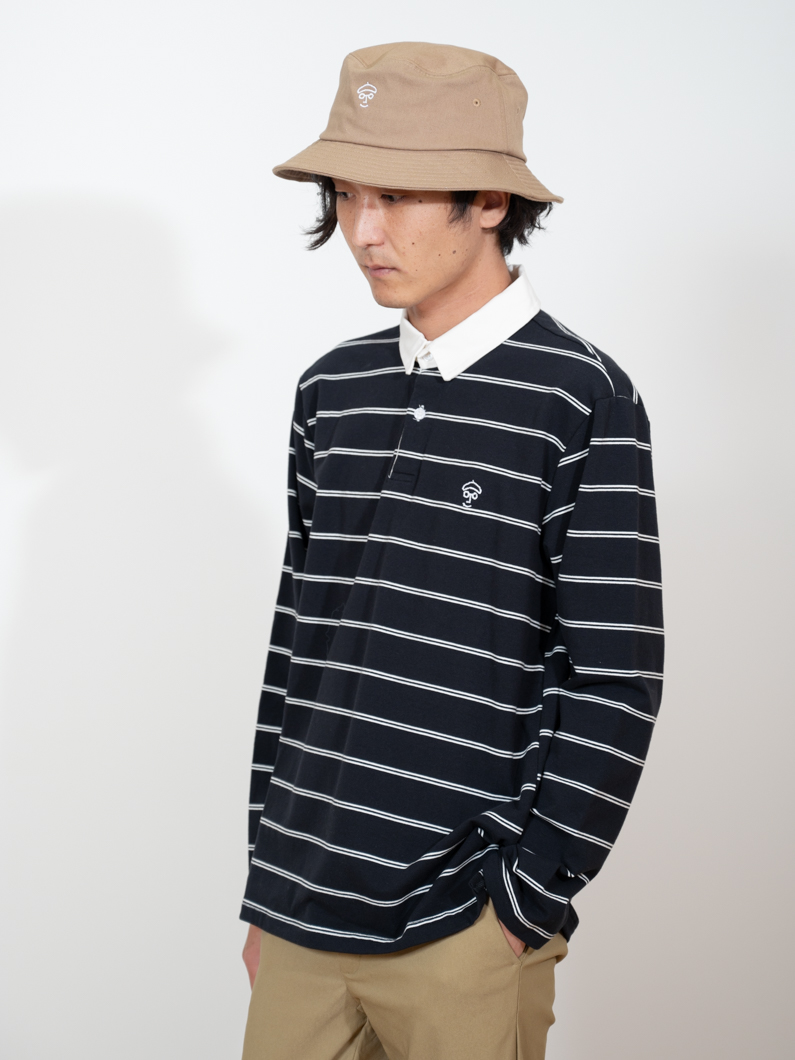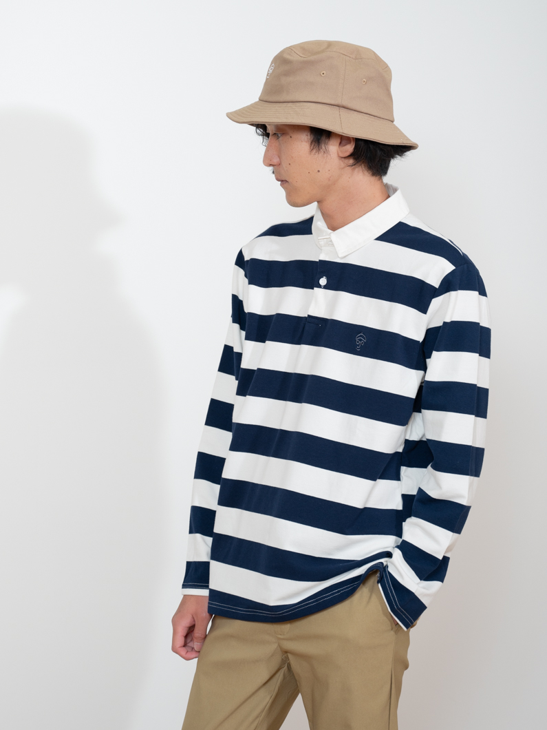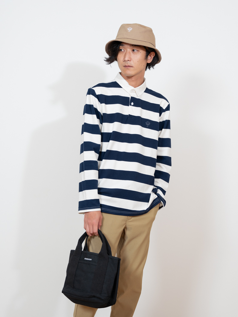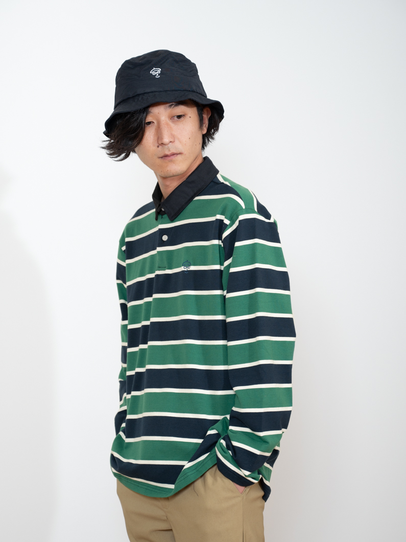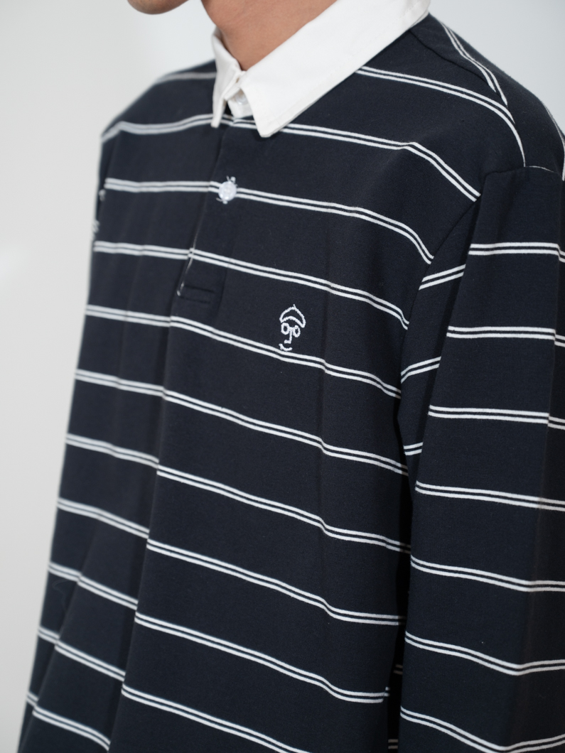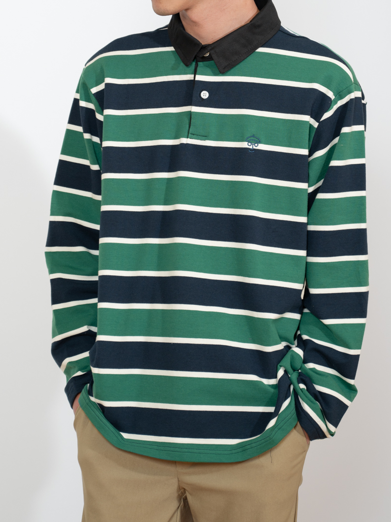 ストレッチ性のあるボーダー長袖ポロ