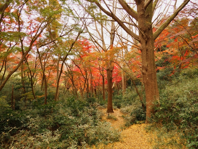円覚寺の広い境内には多くの木々があるため、境内のいたるところが色とりどりの紅葉スポットになっています。
