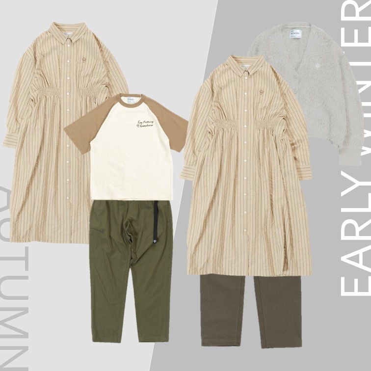 今の季節はTシャツの上の羽織として、肌寒くなってきたら上からカーディガンやベストを重ねて、レイヤードを楽しむのもおすすめです。今から初冬だけでなく、春・夏も表情を変えて楽しめるおすすめアイテムです。