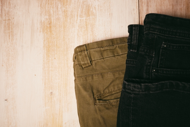 カジュアル・ストリート系統の場合はカーゴパンツ、きれいめ系統の場合は、ストレートのテーパードパンツを合わせるとバランスがとれるでしょう。