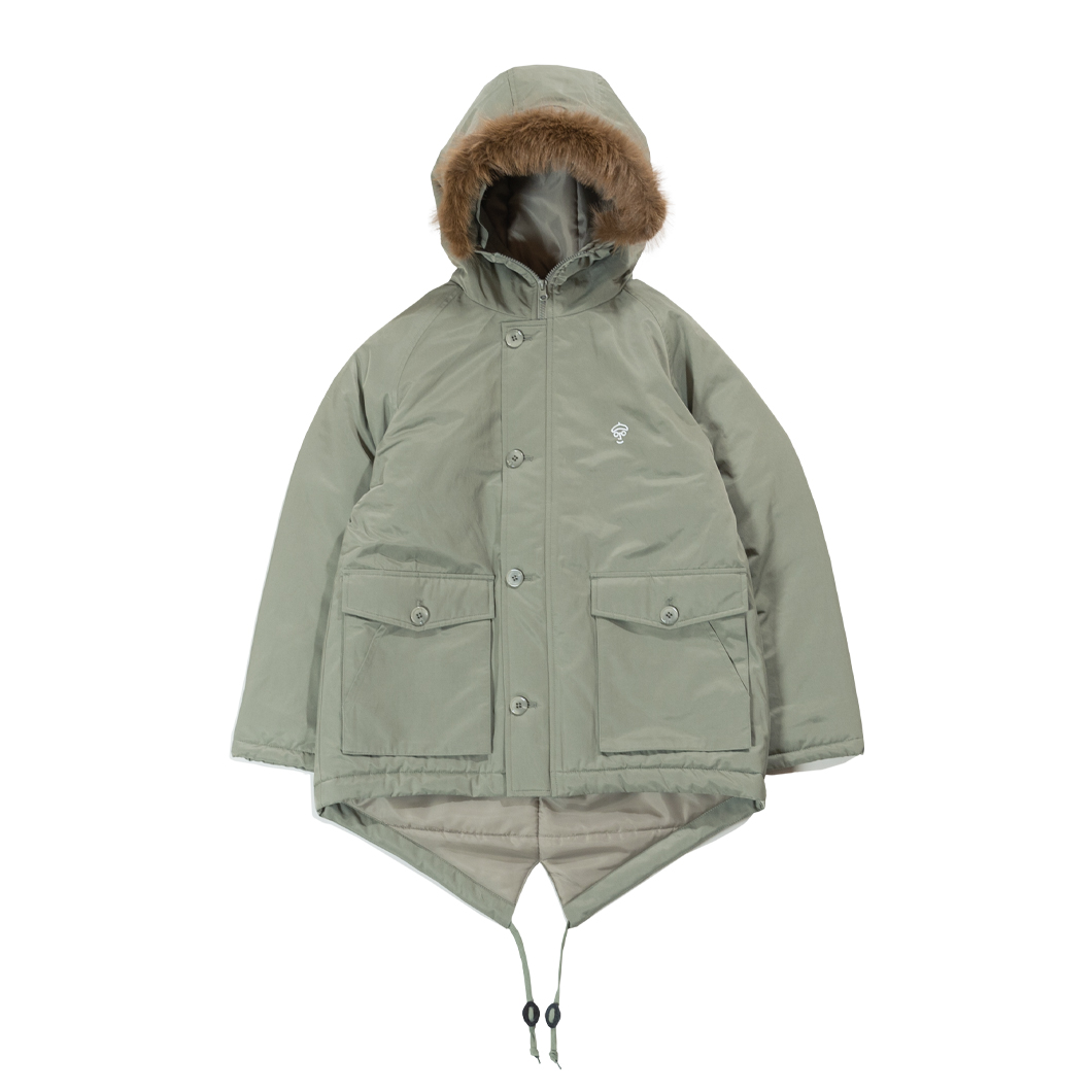 シンプルデザインかつ機能的なジャケット。こちらも男女兼用でご利用頂けて、日々のコーディネートに合わせやすいアイテムです。ボリュームが出すぎない為、ゆったりとしたボトムスとも相性が良く、さらには大きめアウターであれば、インナーとしても取り入れて頂けます。また、軽量保温性に特化した高化学繊維 THERMO LITE®(サーモライト)を使用している為、大変軽く保温性も優れております。裾のドローコードで絞ることでさらに風が入りにくくなります。光沢感も無く、生地色もオシャレな展開です。店舗やPOPUPイベントでは幅広いご年齢層の方に手に取って頂いたアウター№1です!