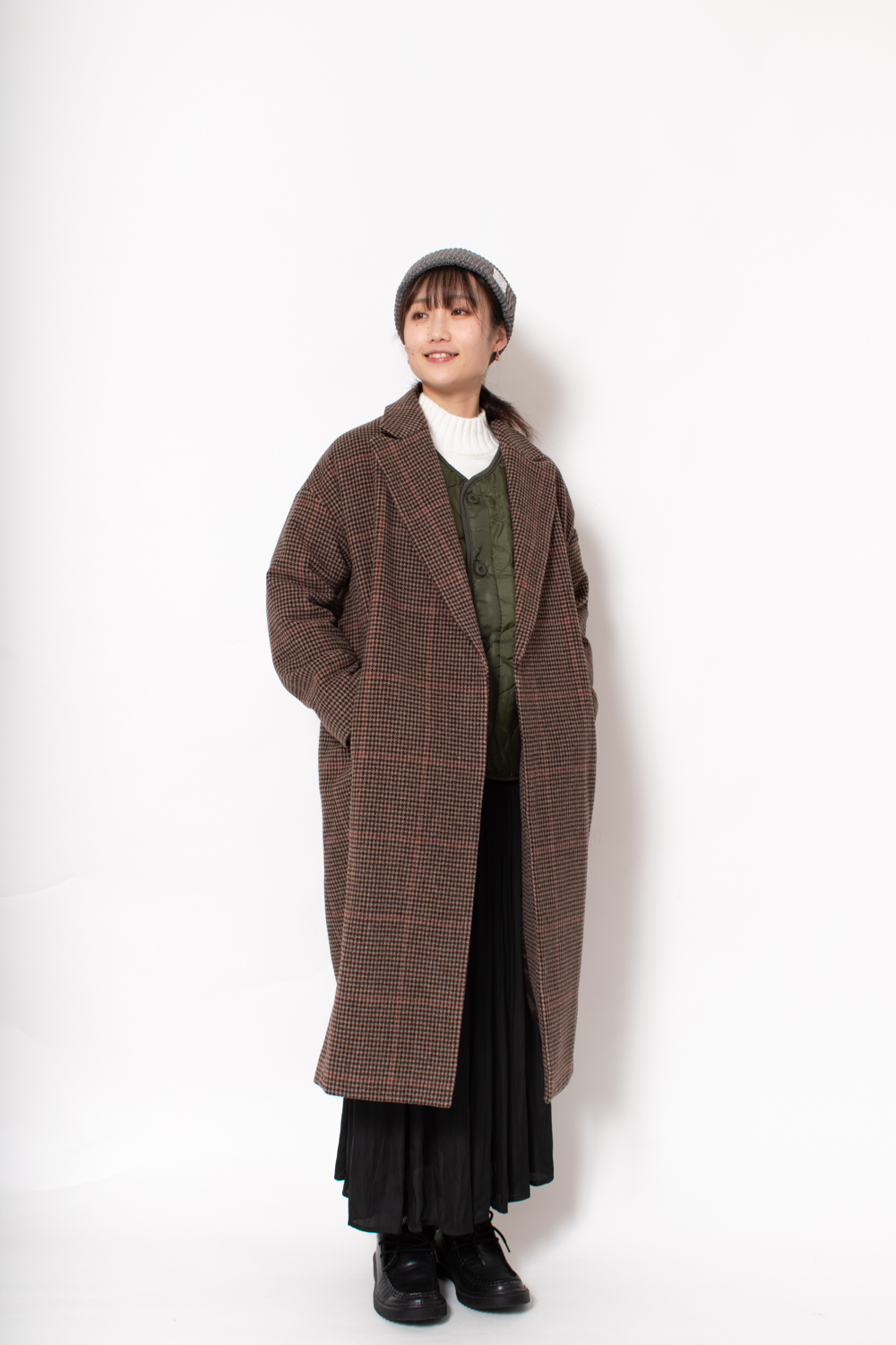 中に着こむ分、上に羽織るアウターは少しゆとりのあるものがおすすめです。