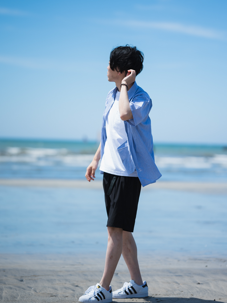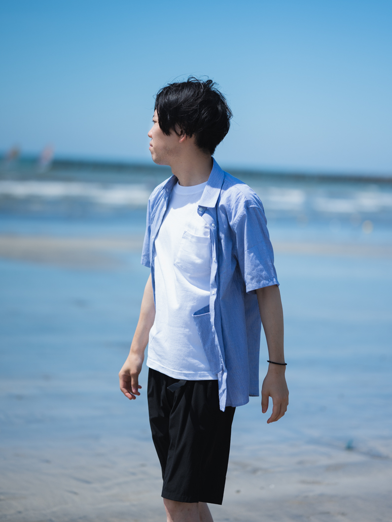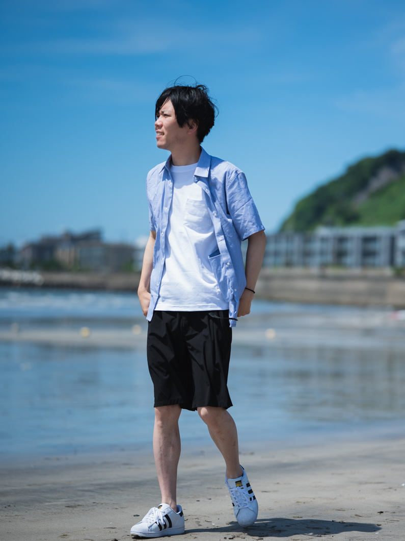 Snap button short shirts STRIPEを使用したコーディネート。