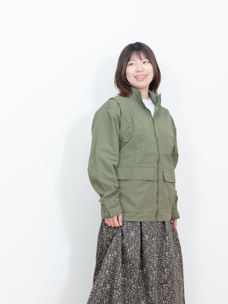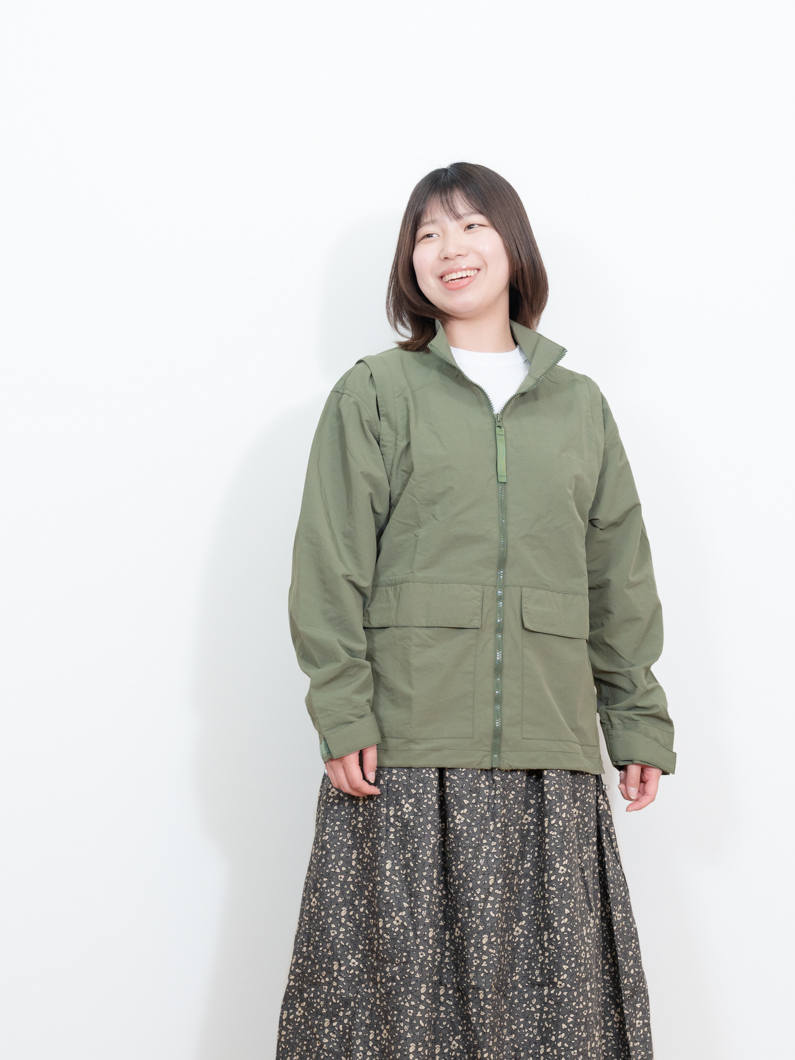 2Way sleeve jacket OLIVEを使用したコーディネート。
