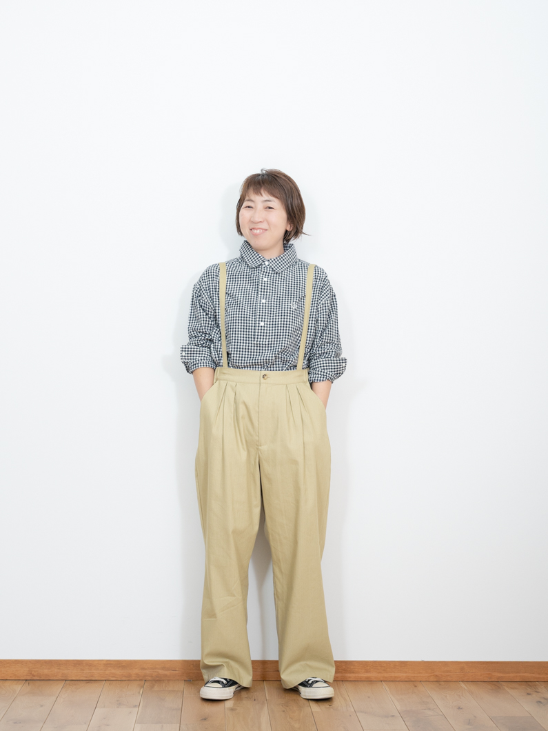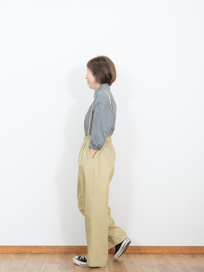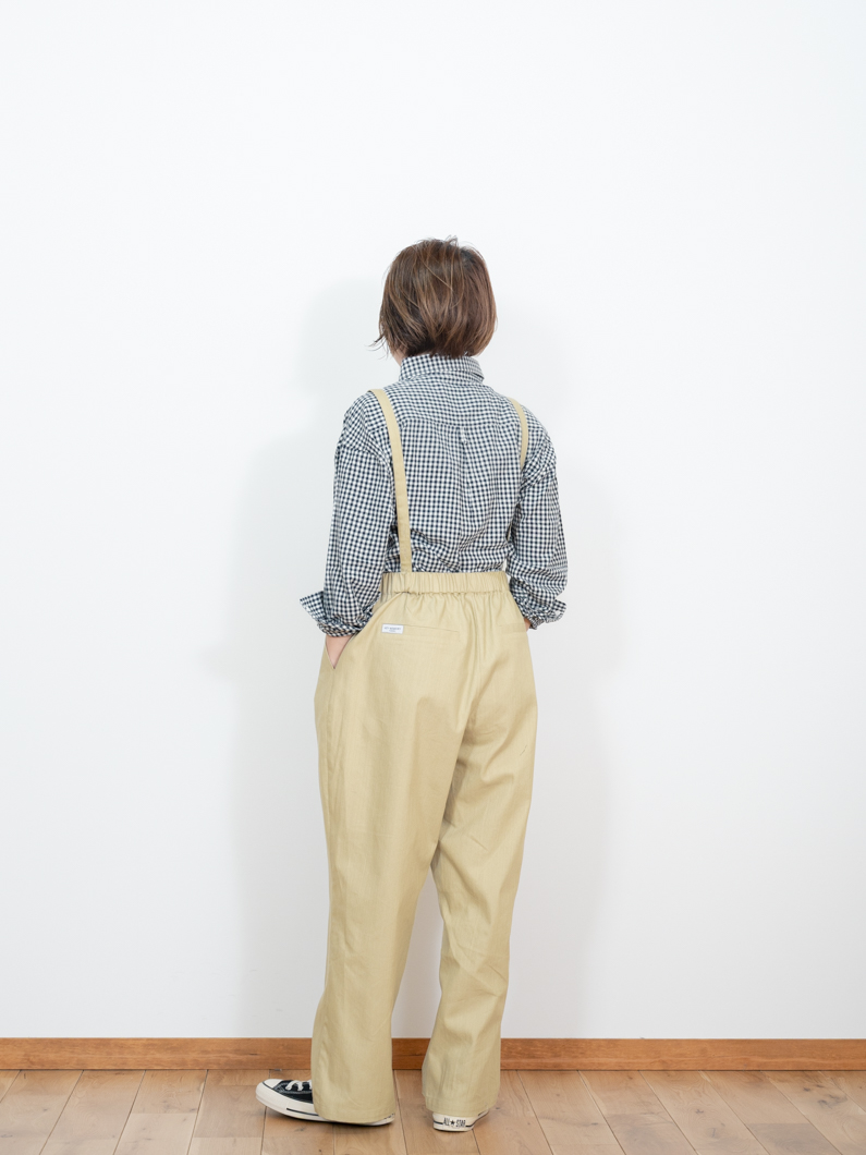 2Way suspender pants BEIGEを使用したコーディネート。
