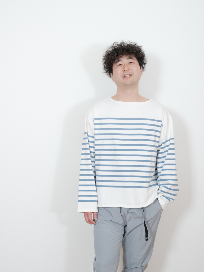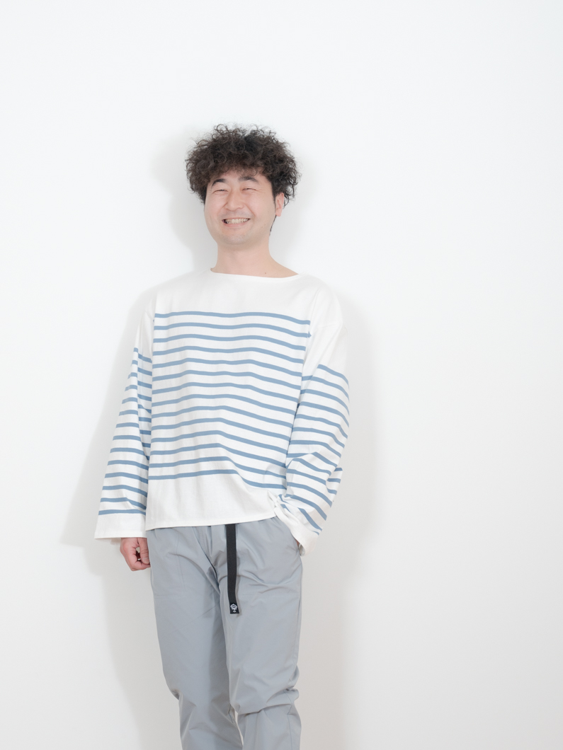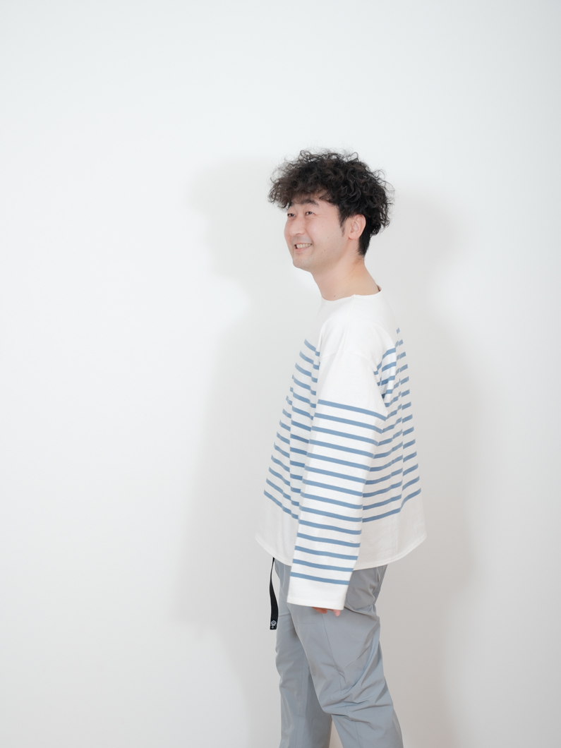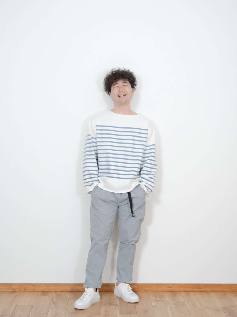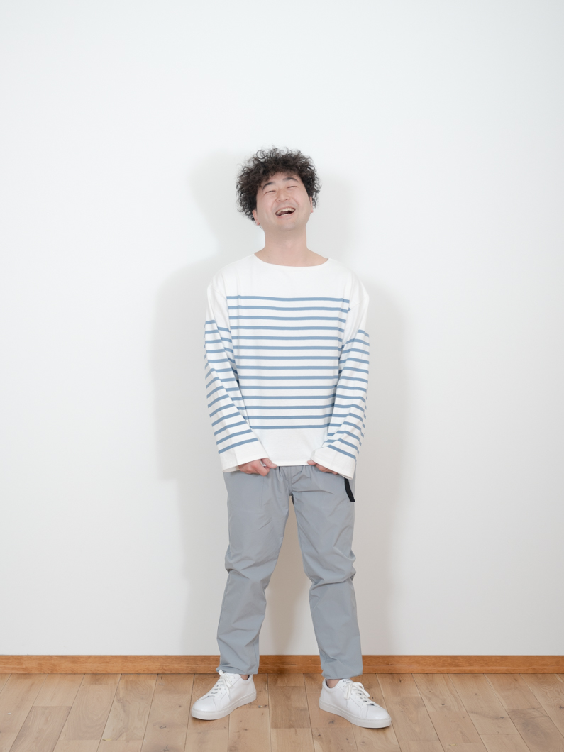 Basque long shirt BLUEを使用したコーディネート。
