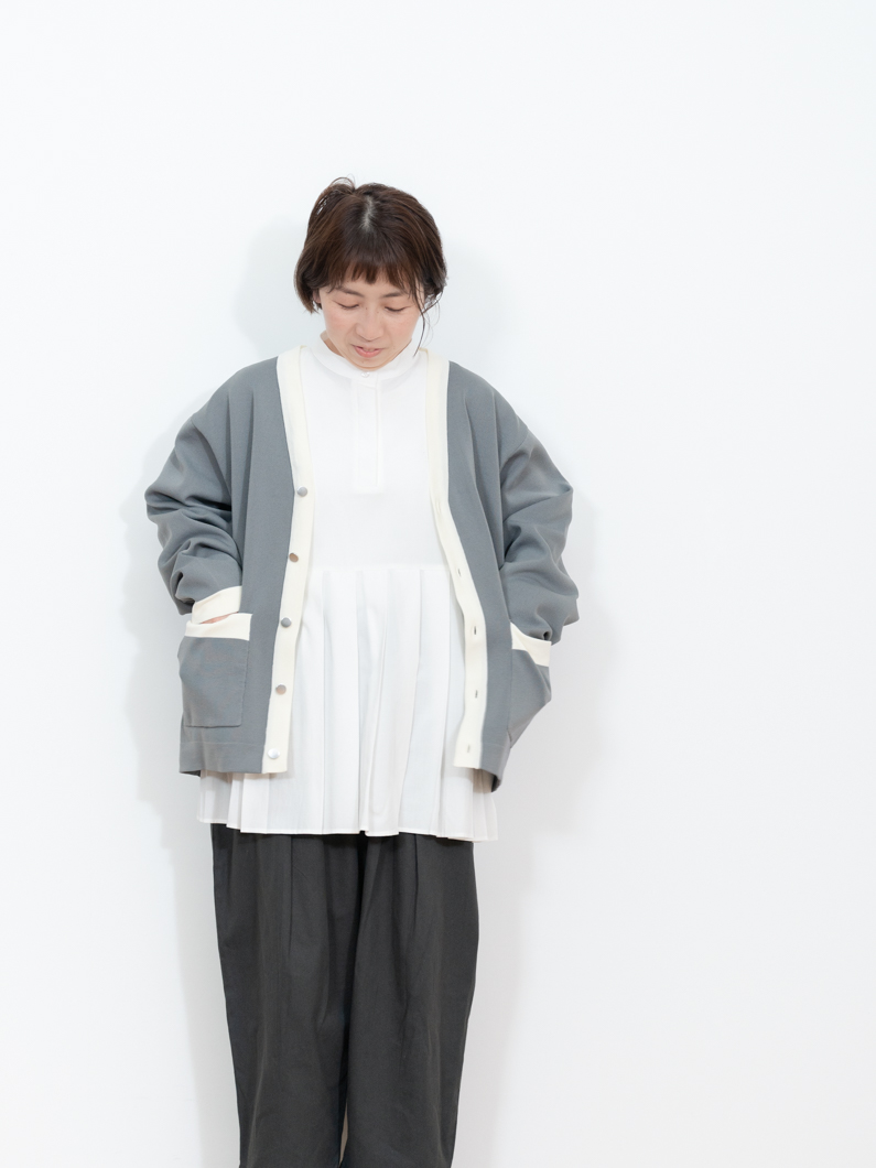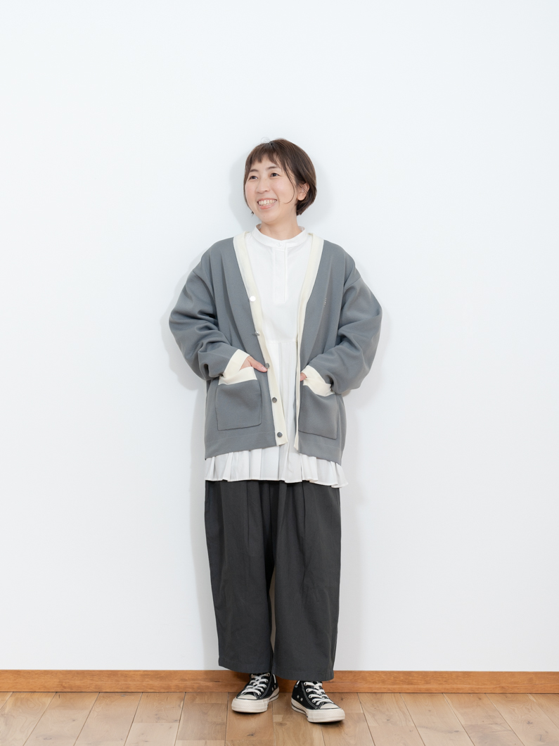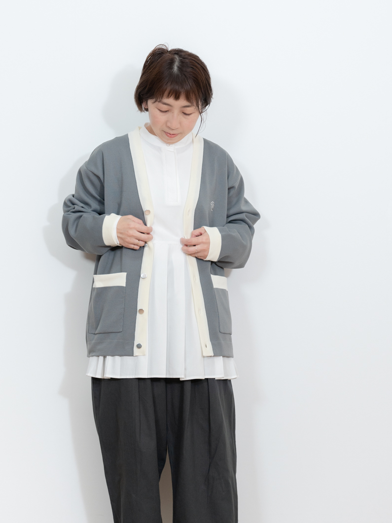 Bicolor knit cardigan GRAYを使用したコーディネート。