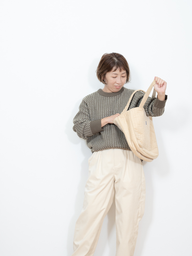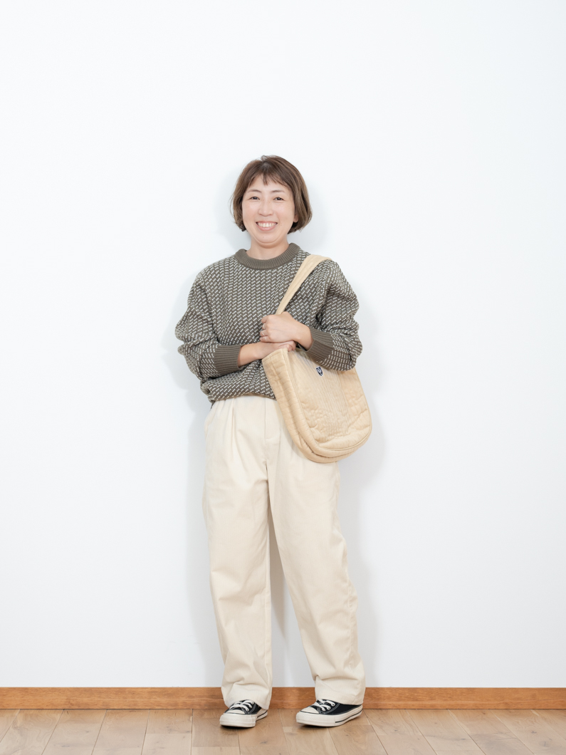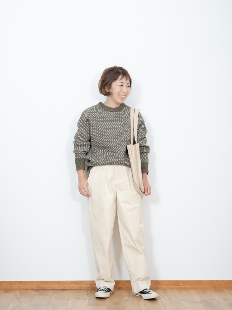 Birdseye knit KHAKIを使用したコーディネート。