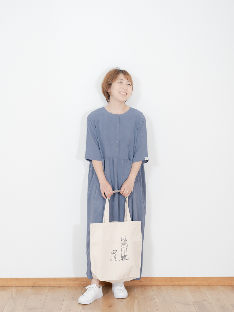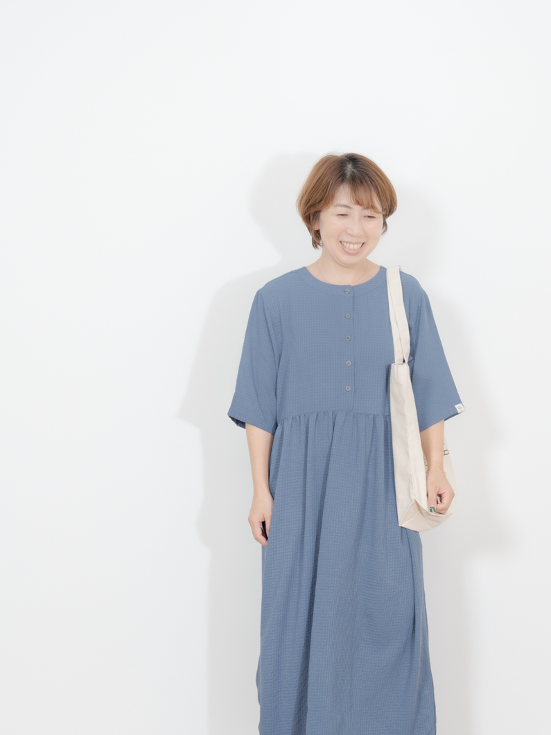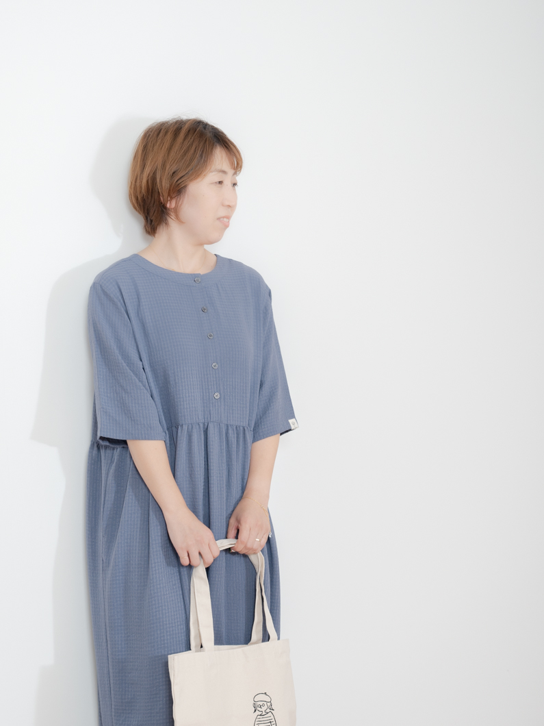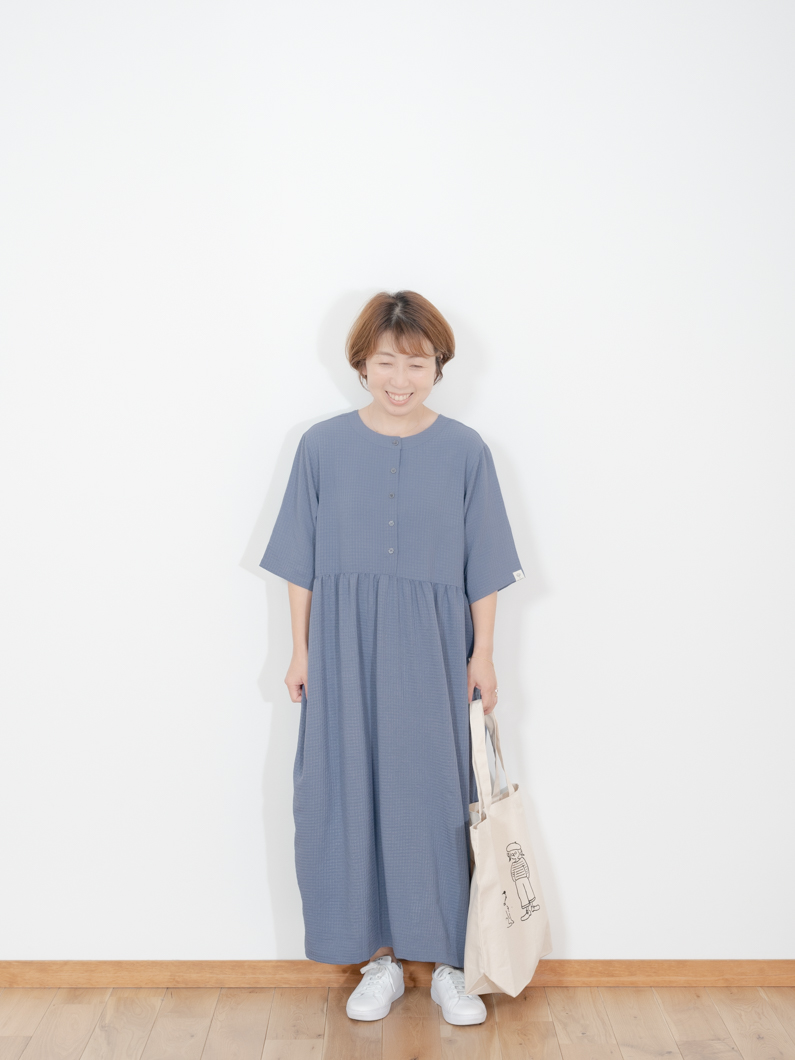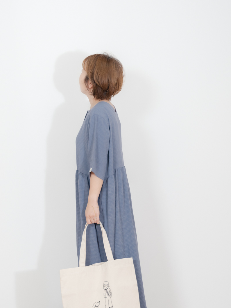 Check 2way dress BLUEを使用したコーディネート。