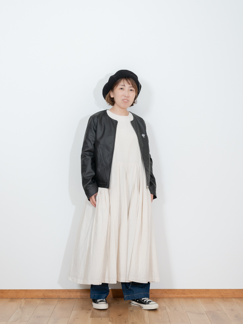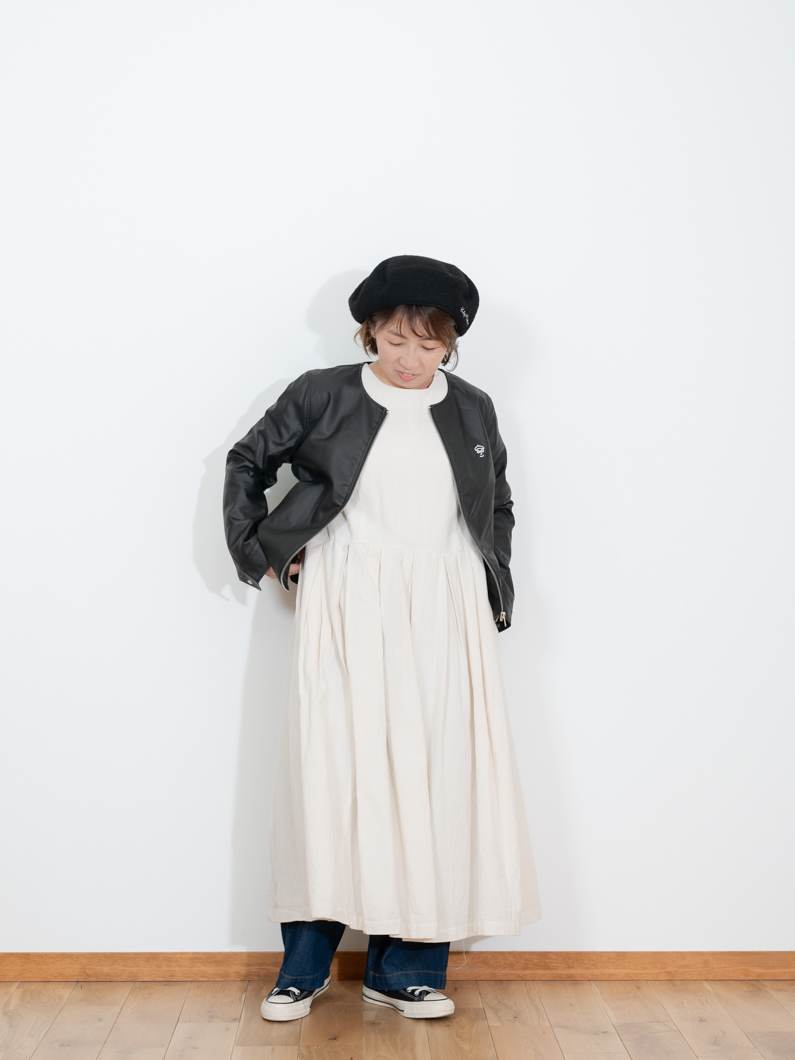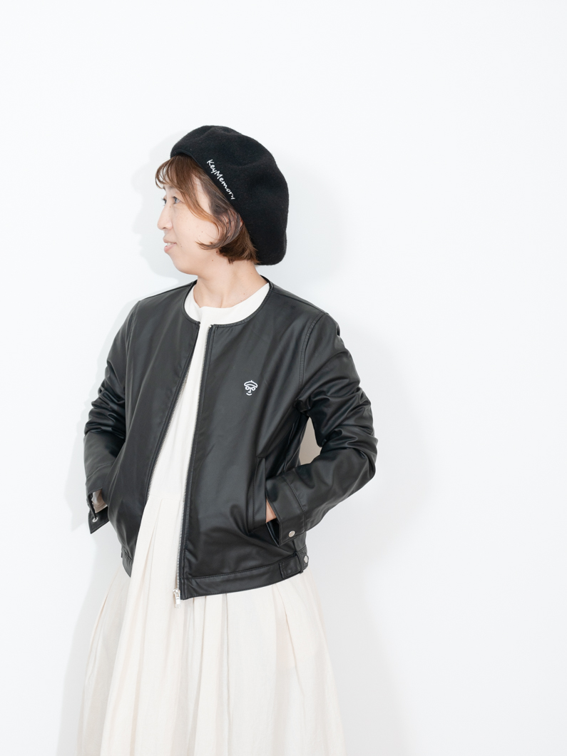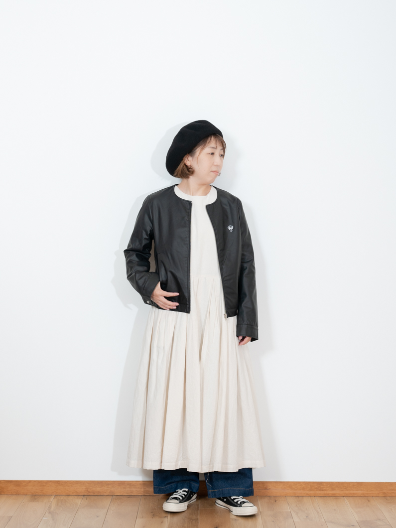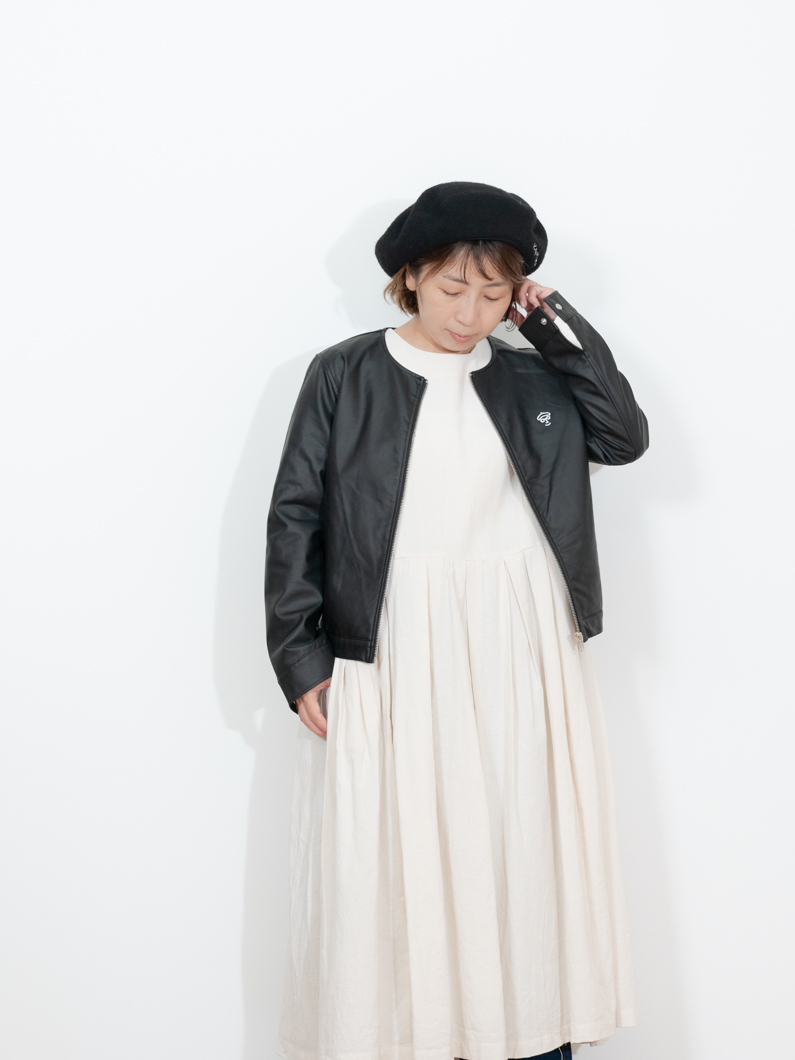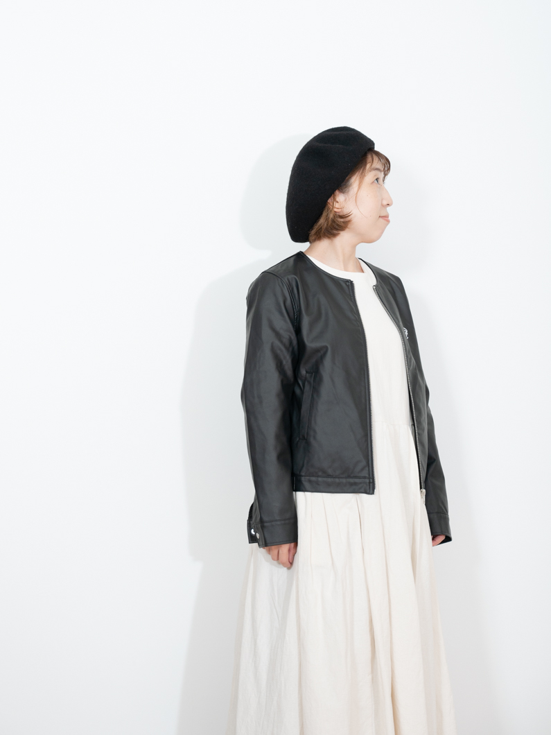 Collarless leather jacket BLACKを使用したコーディネート。