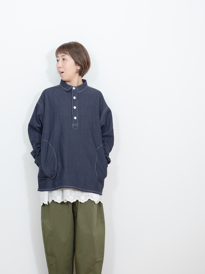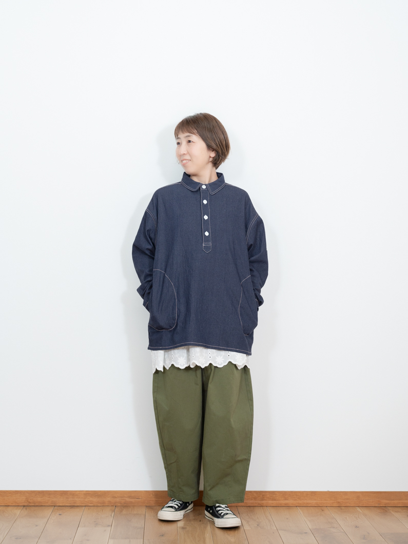 Denim pullover shirts INDIGOを使用したコーディネート。