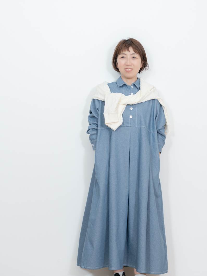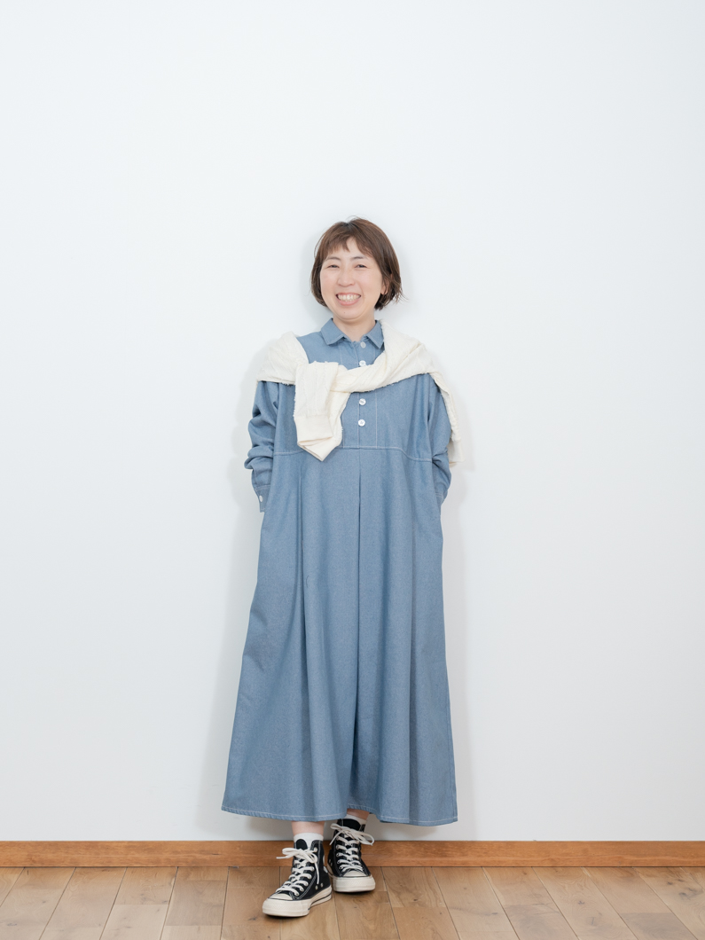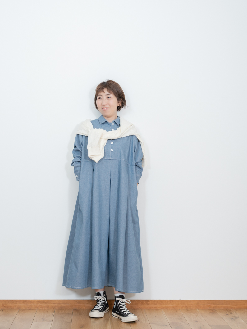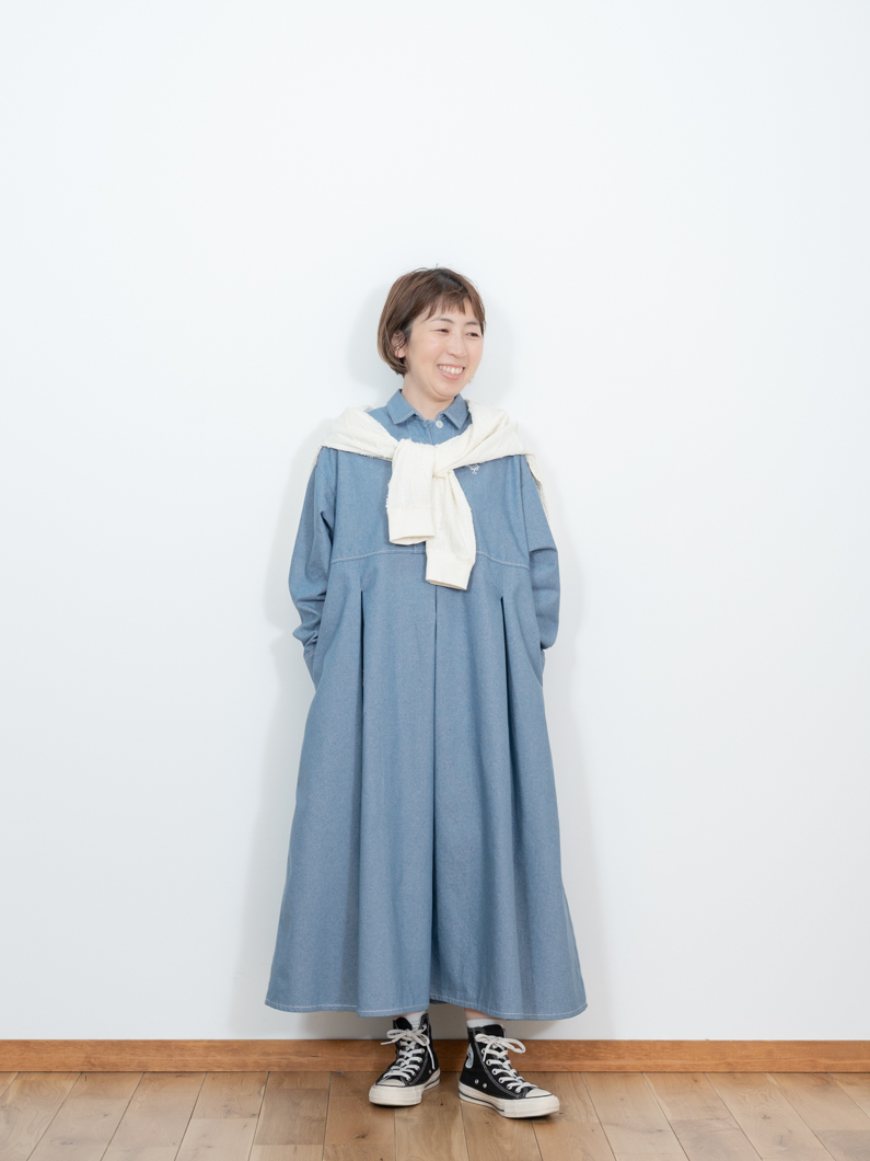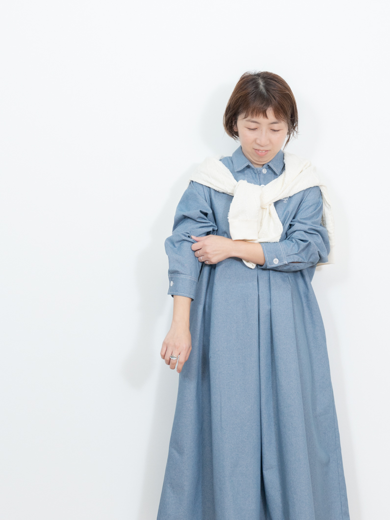 Denim tuck dress BLUEを使用したコーディネート。