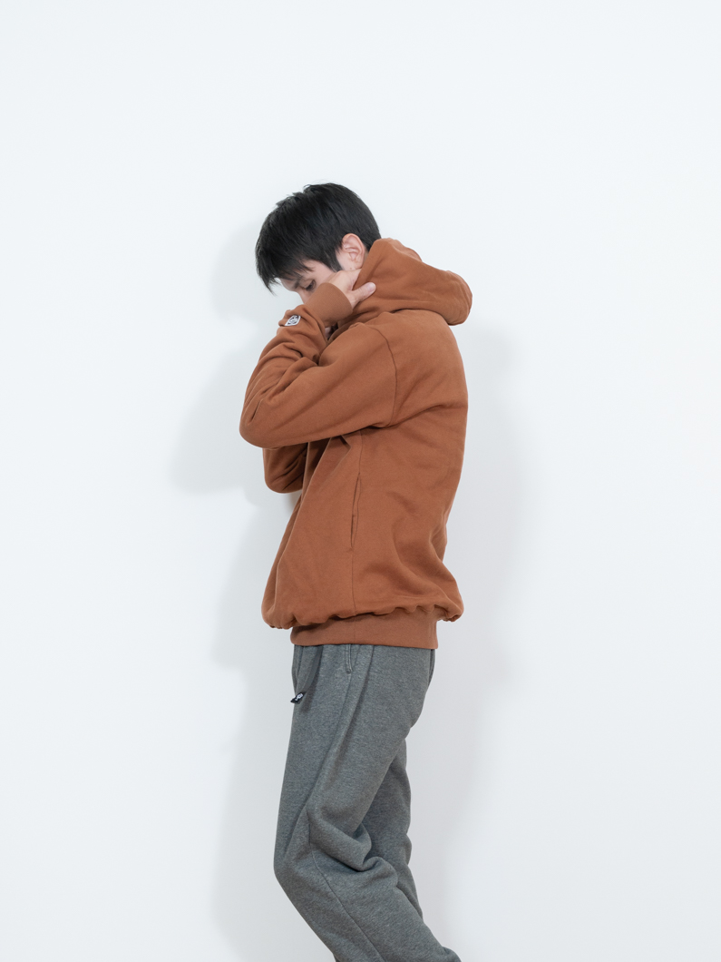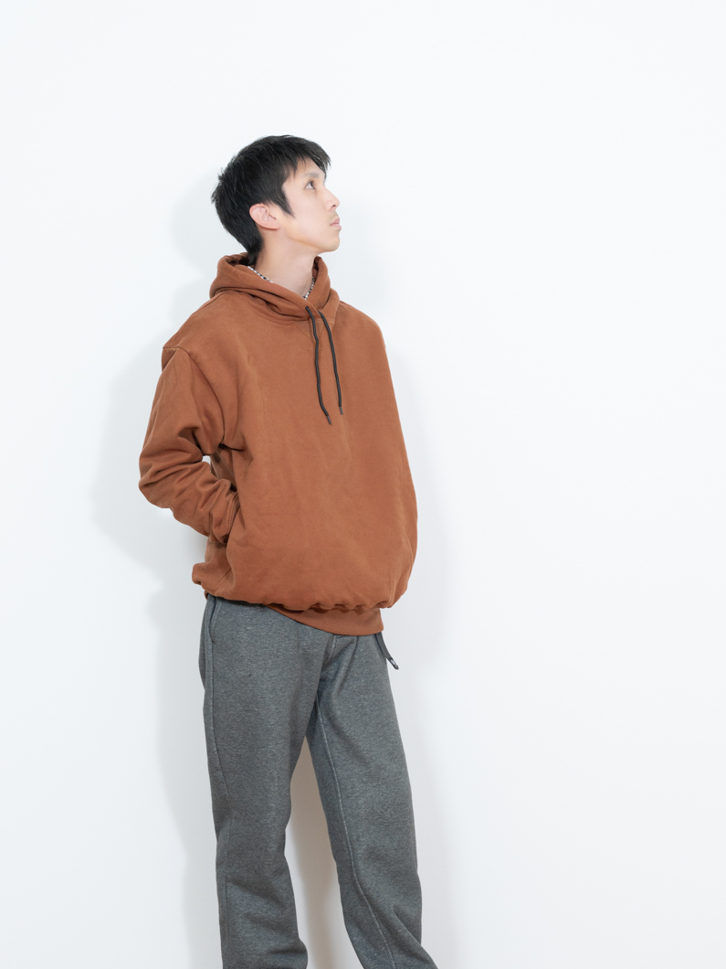 Fleece lining hoodie BROWNを使用したコーディネート。