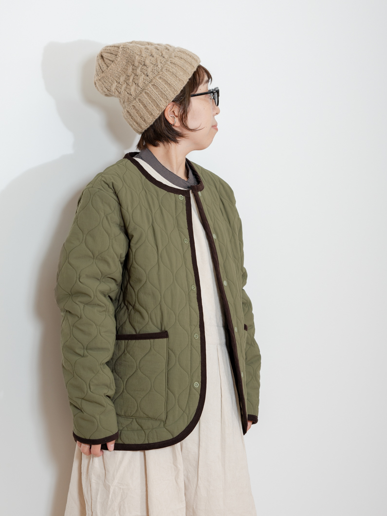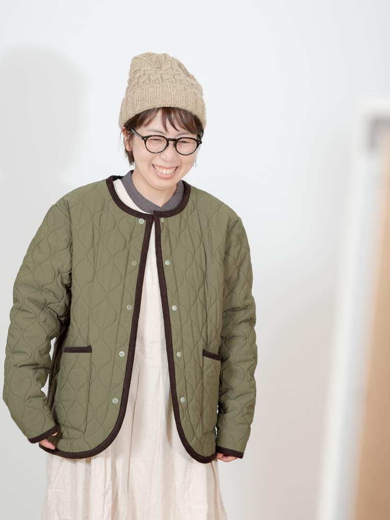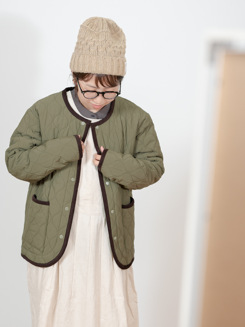 Fleece quilt jacket OLIVEを使用したコーディネート。