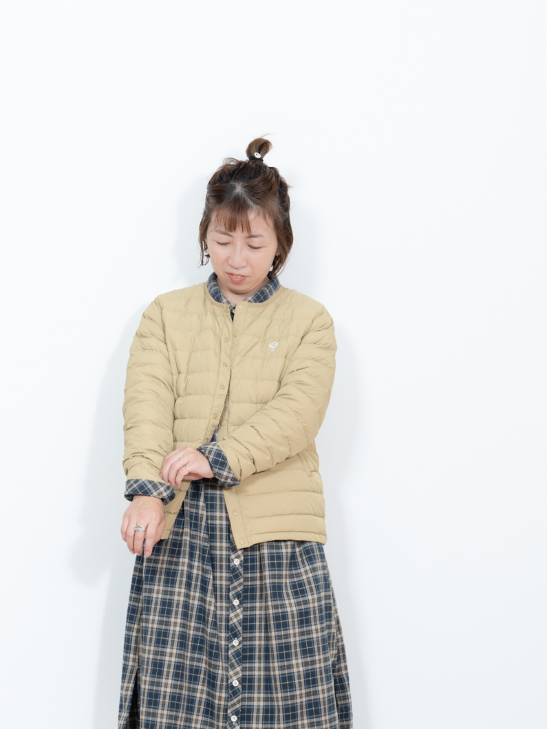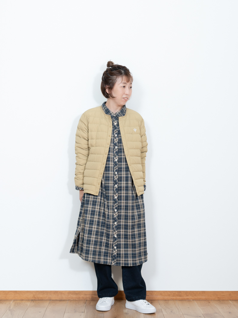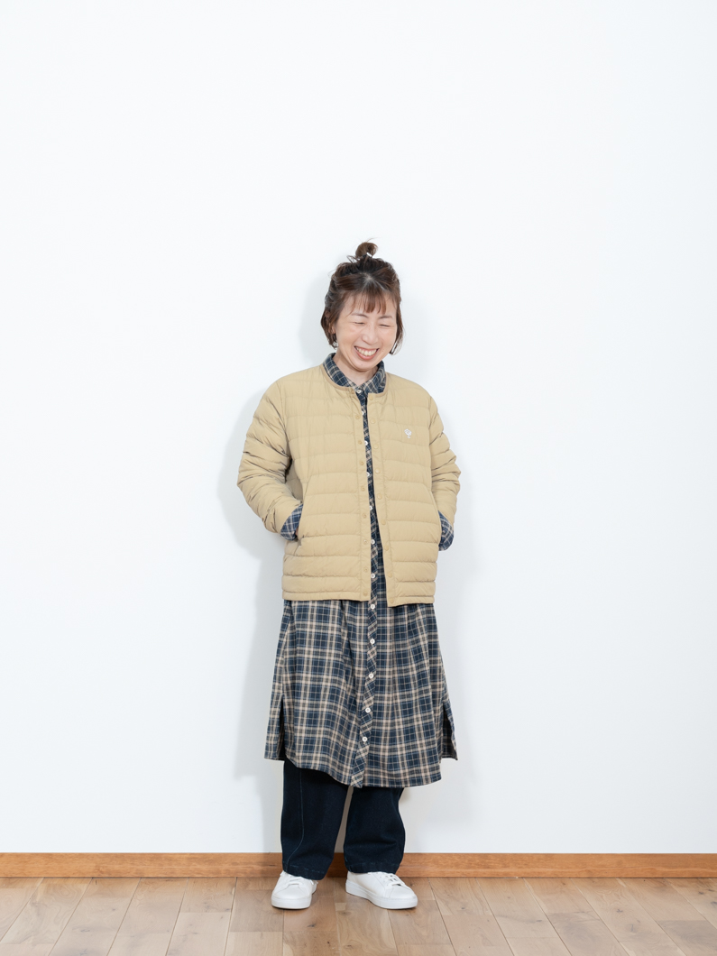 Inner down jacket BEIGEを使用したコーディネート。