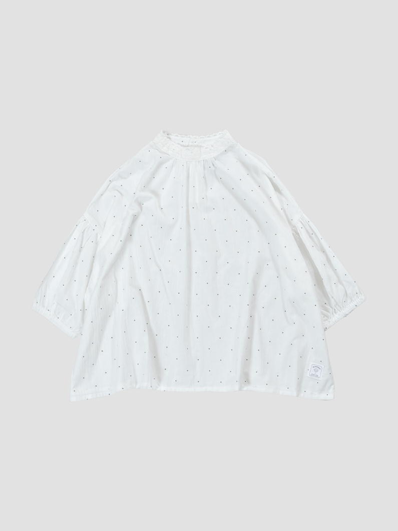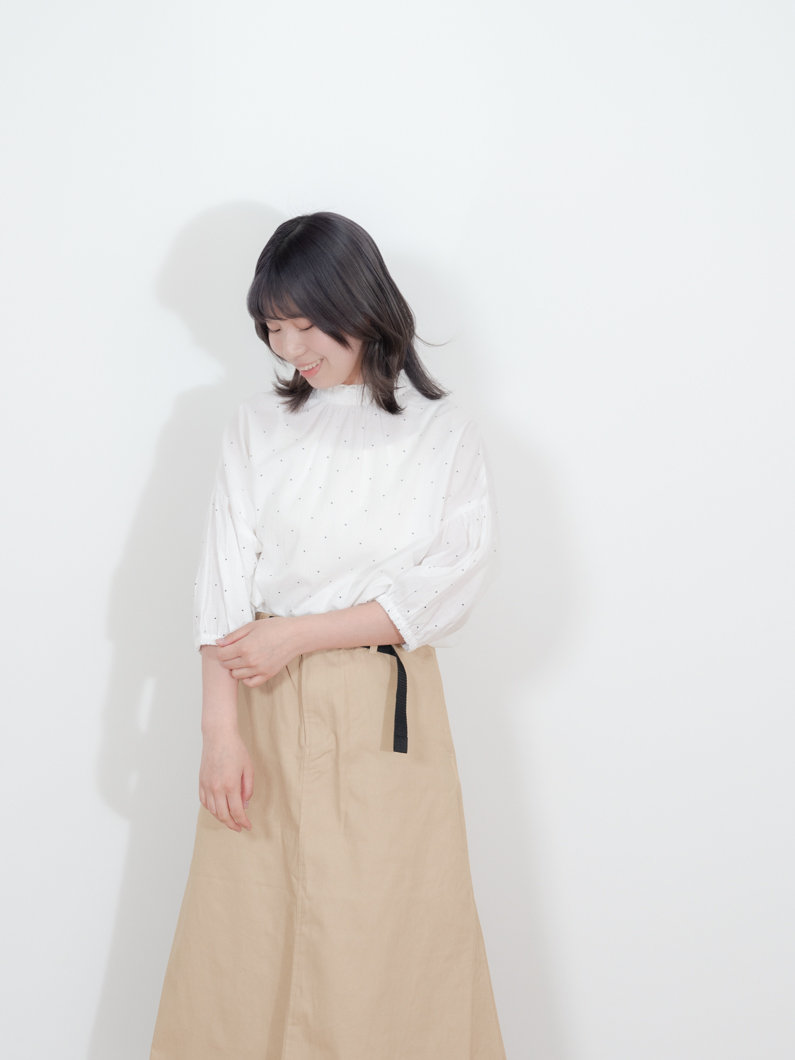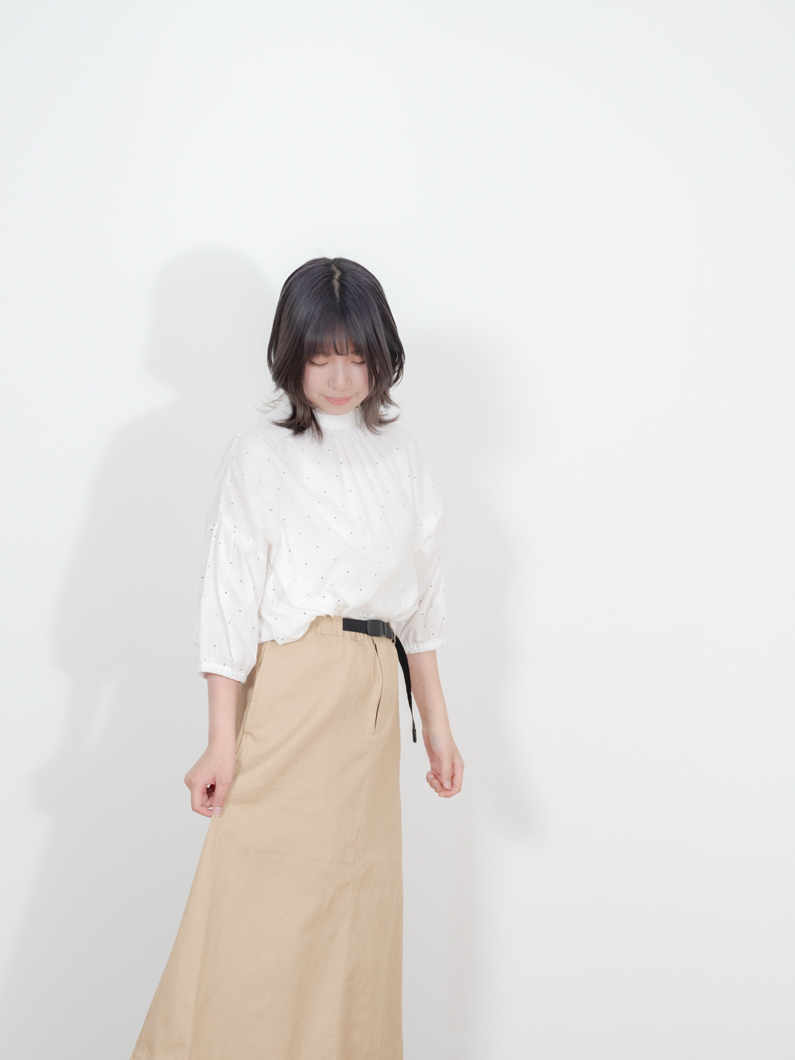 Lace neck blouse DOTを使用したコーディネート。