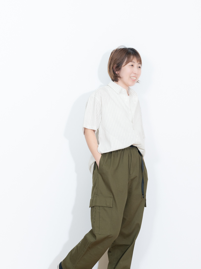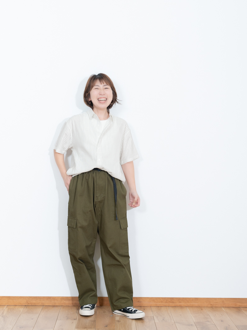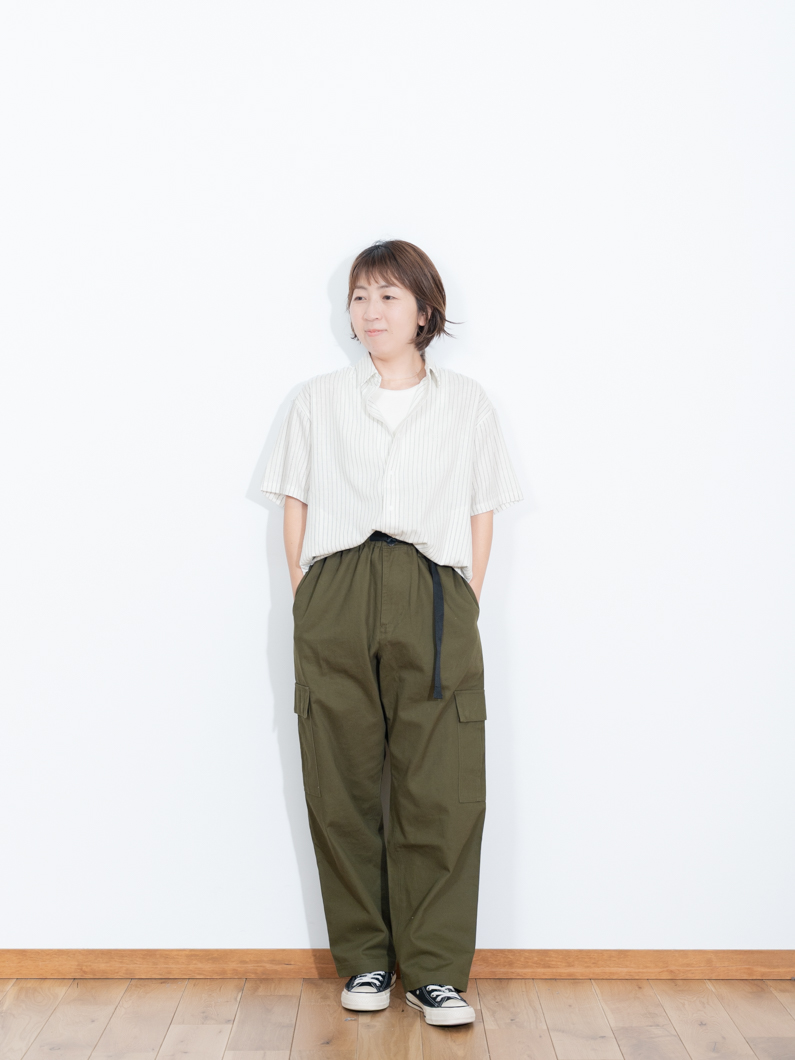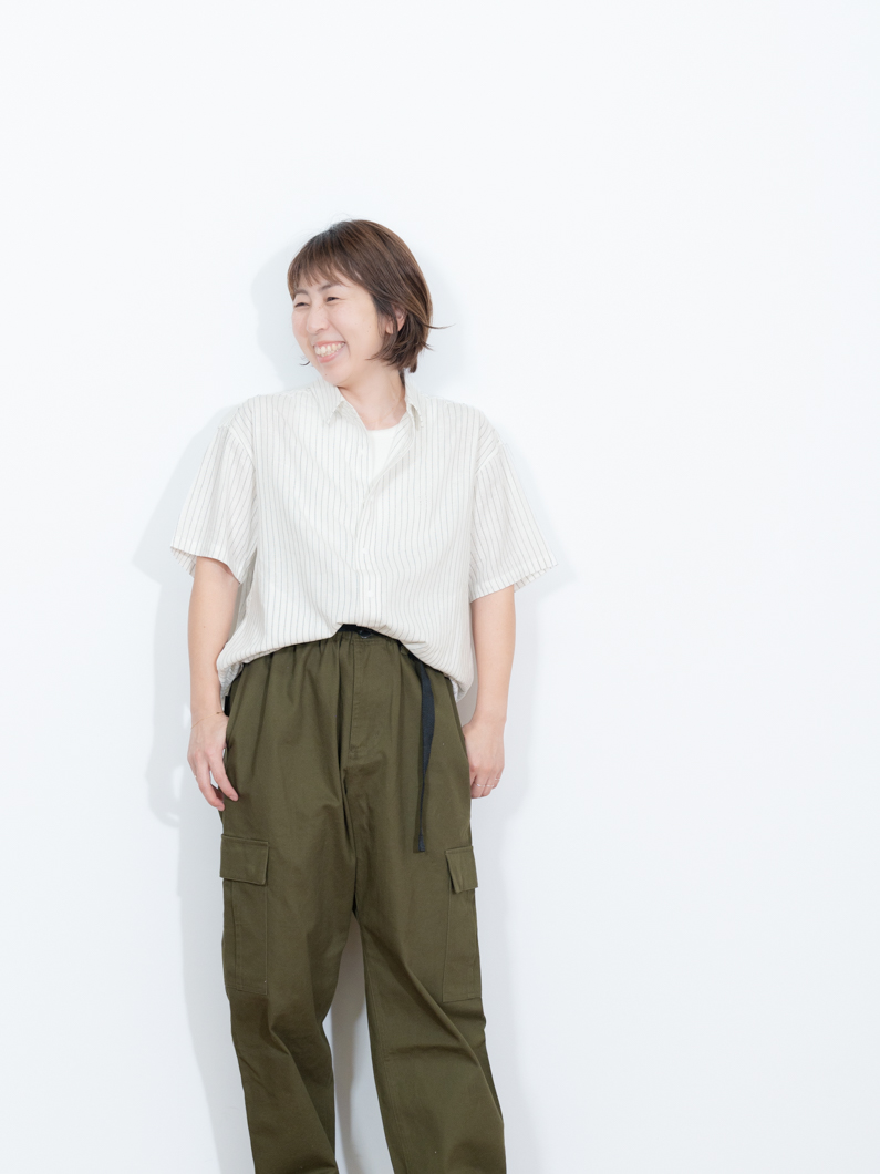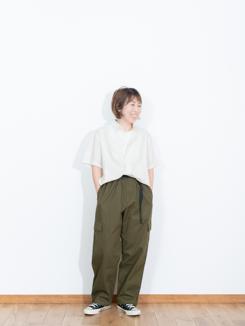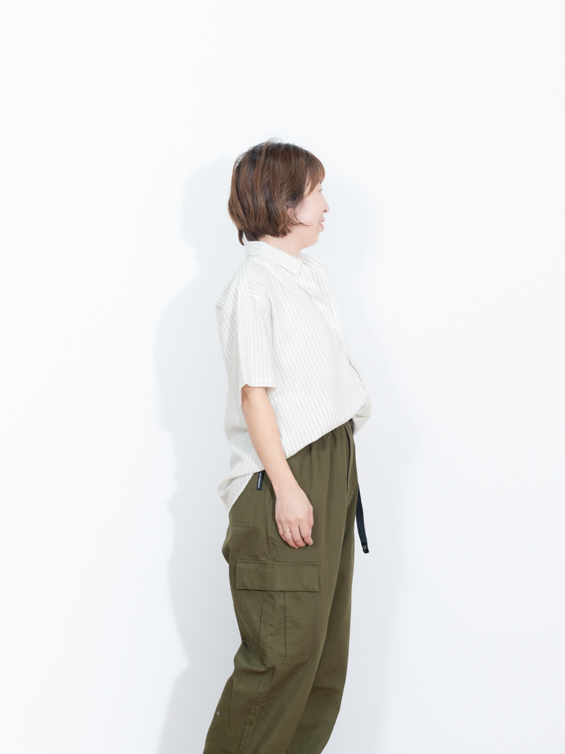 Linen snap short shirts STRIPEを使用したコーディネート。