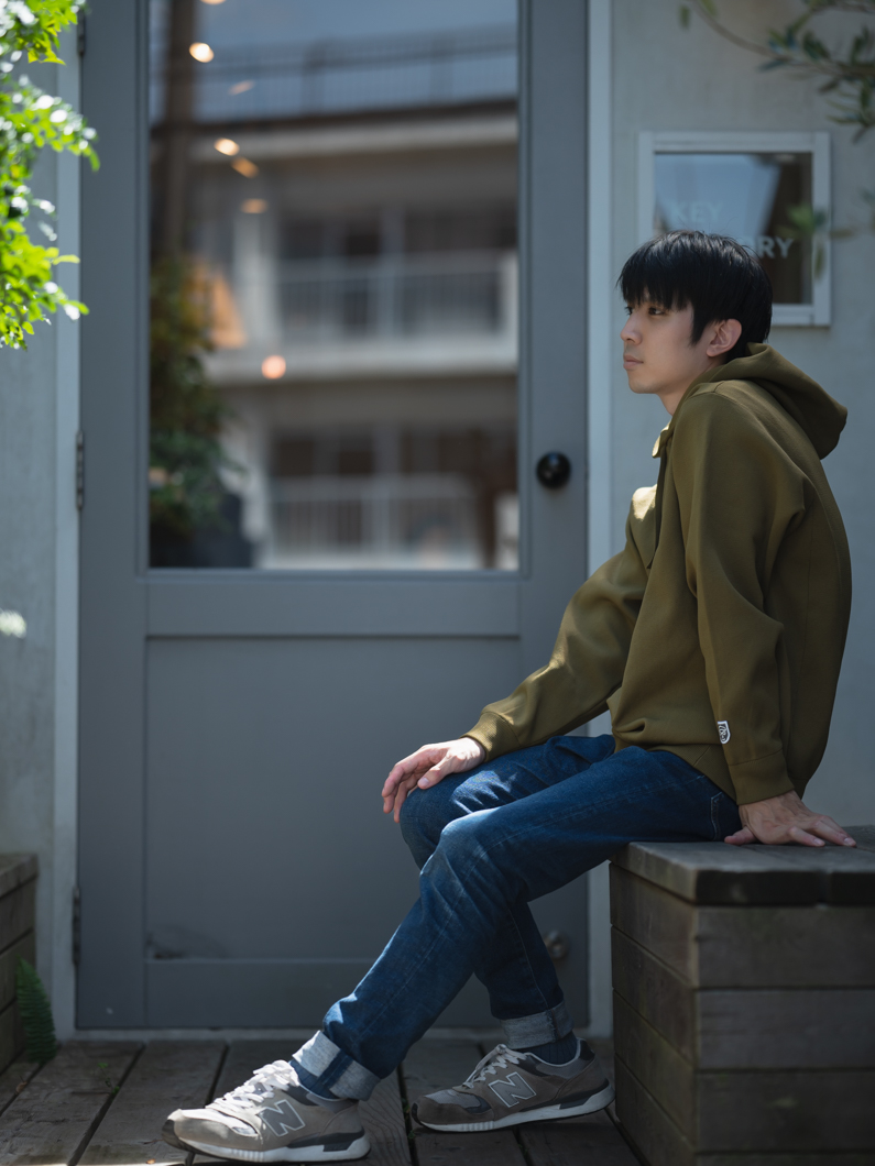 Milanorib hoodie KAHKIを使用したコーディネート。