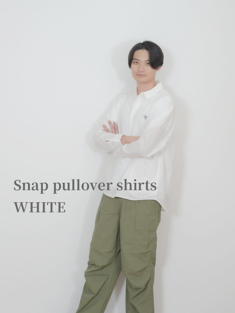 Snap pullover shirts WHITEを使用したコーディネート。 STAFF村岡 181cm