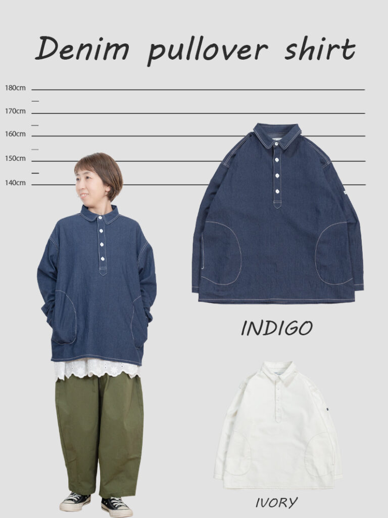 Denim pullover shirts INDIGOを使用したコーディネート。 STAFFつぼの 153cm
