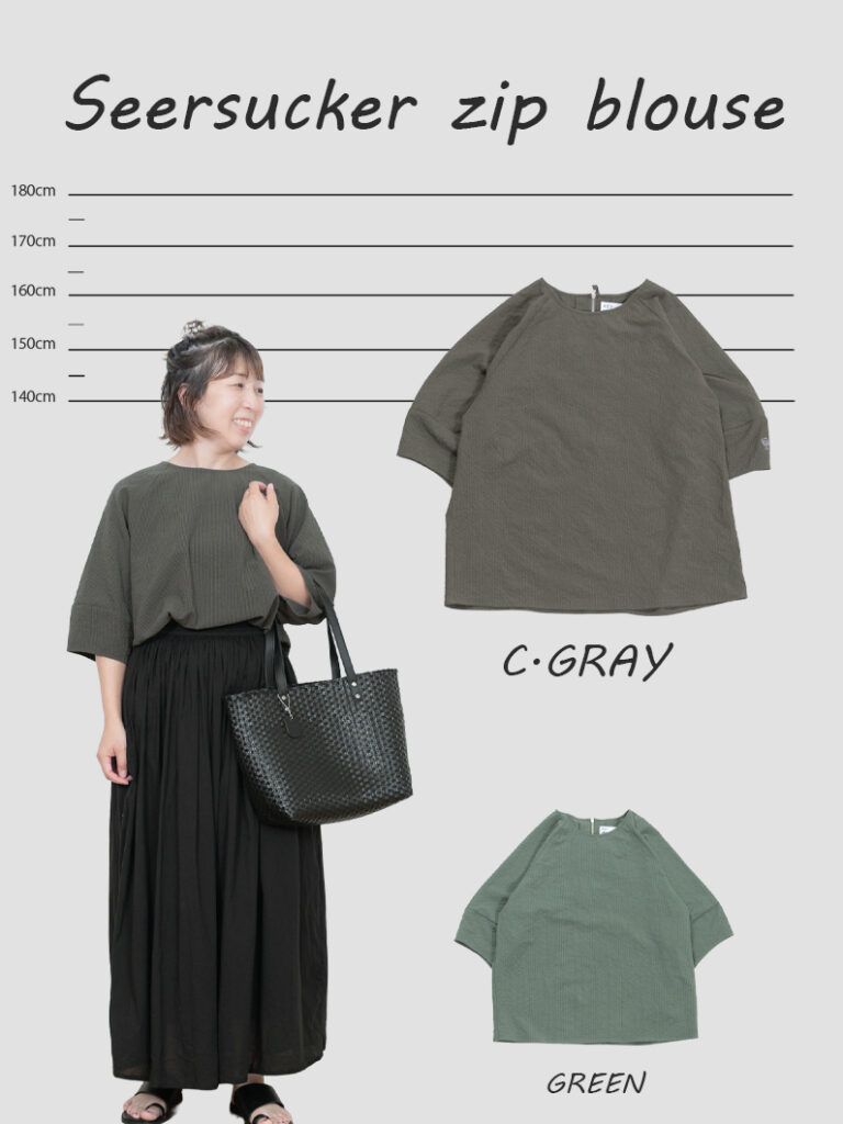 Seersucker zip blouse C.GRAYを使用したコーディネート。 STAFFつぼの 153cm