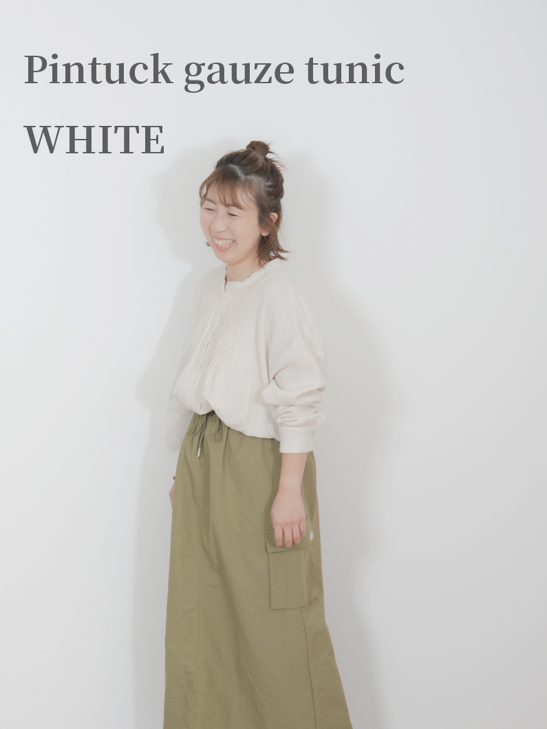 Pintuck gauze tunic WHITEを使用したコーディネート。