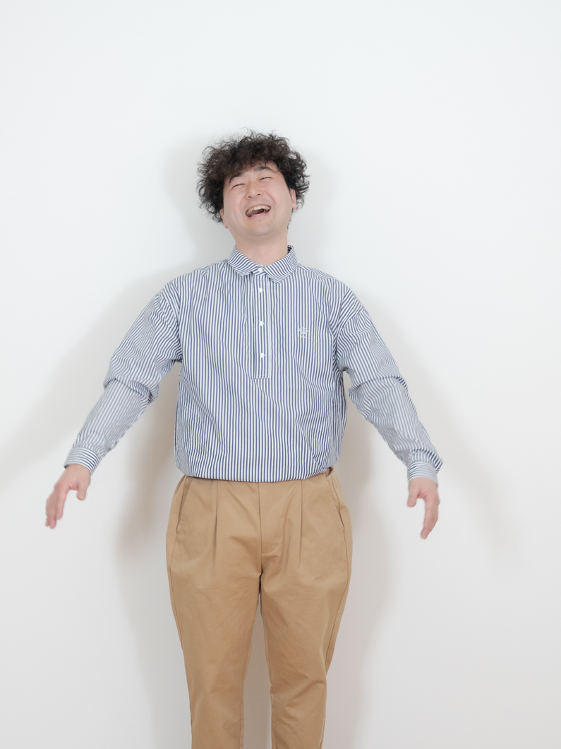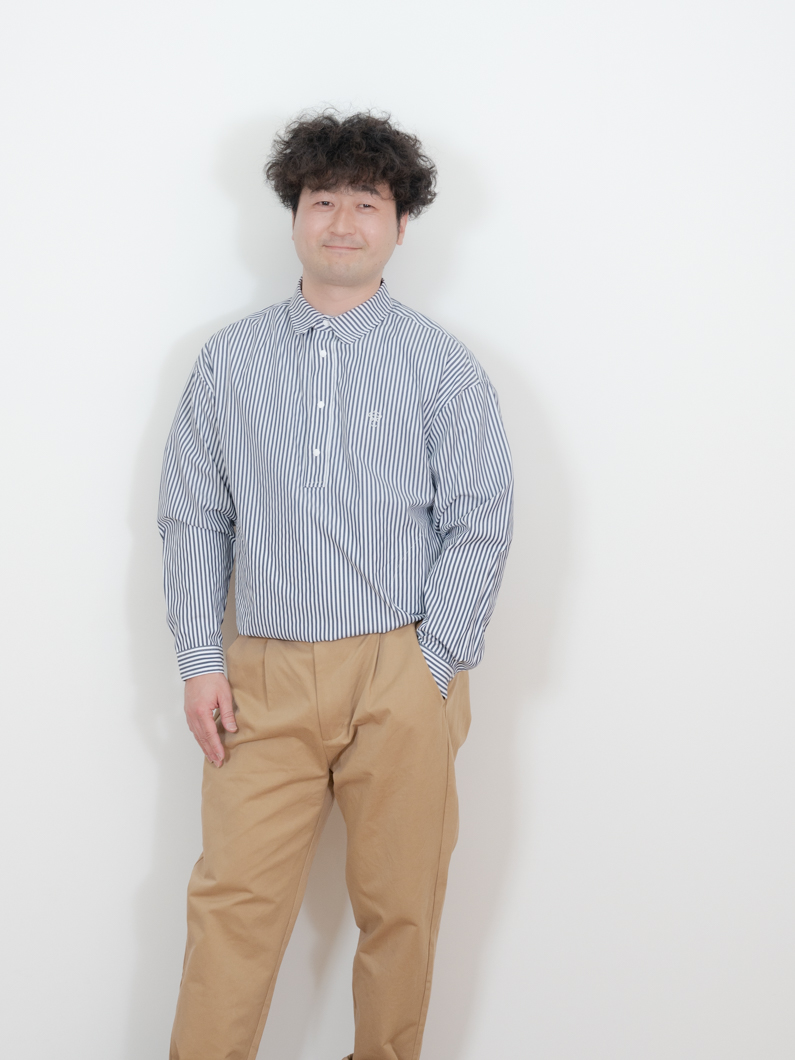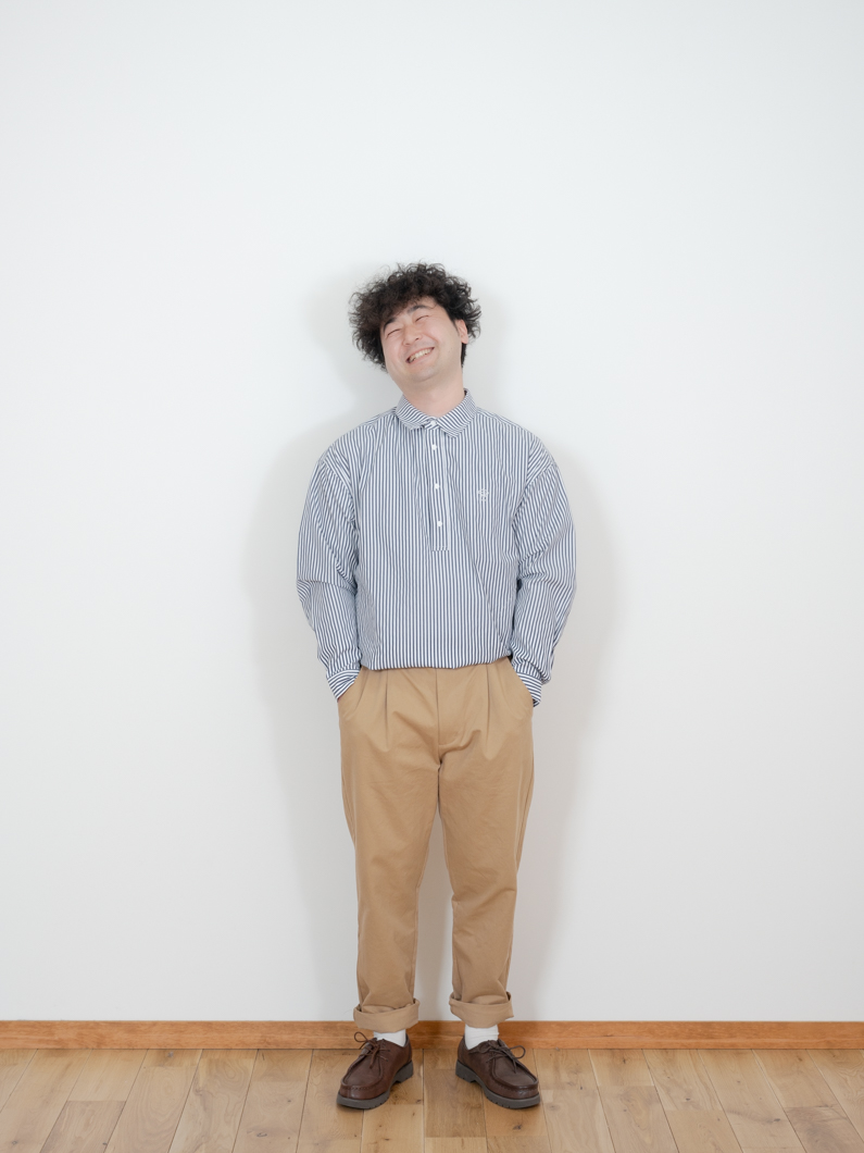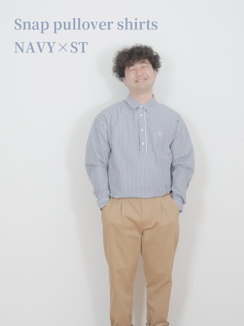 Snap pullover shirts NAVY×STを使用したコーディネート。