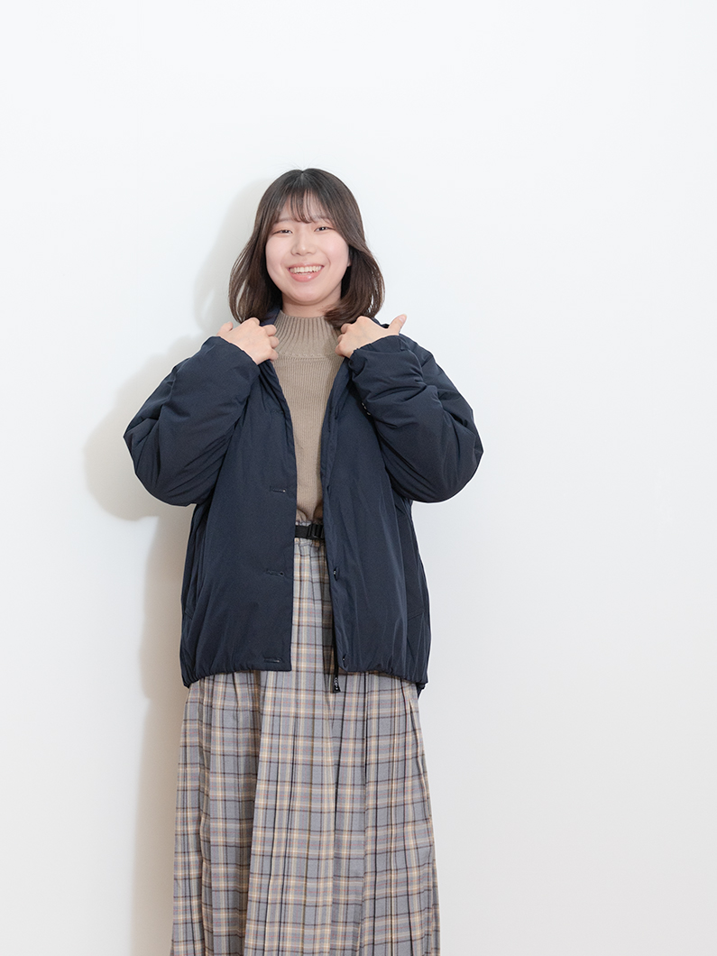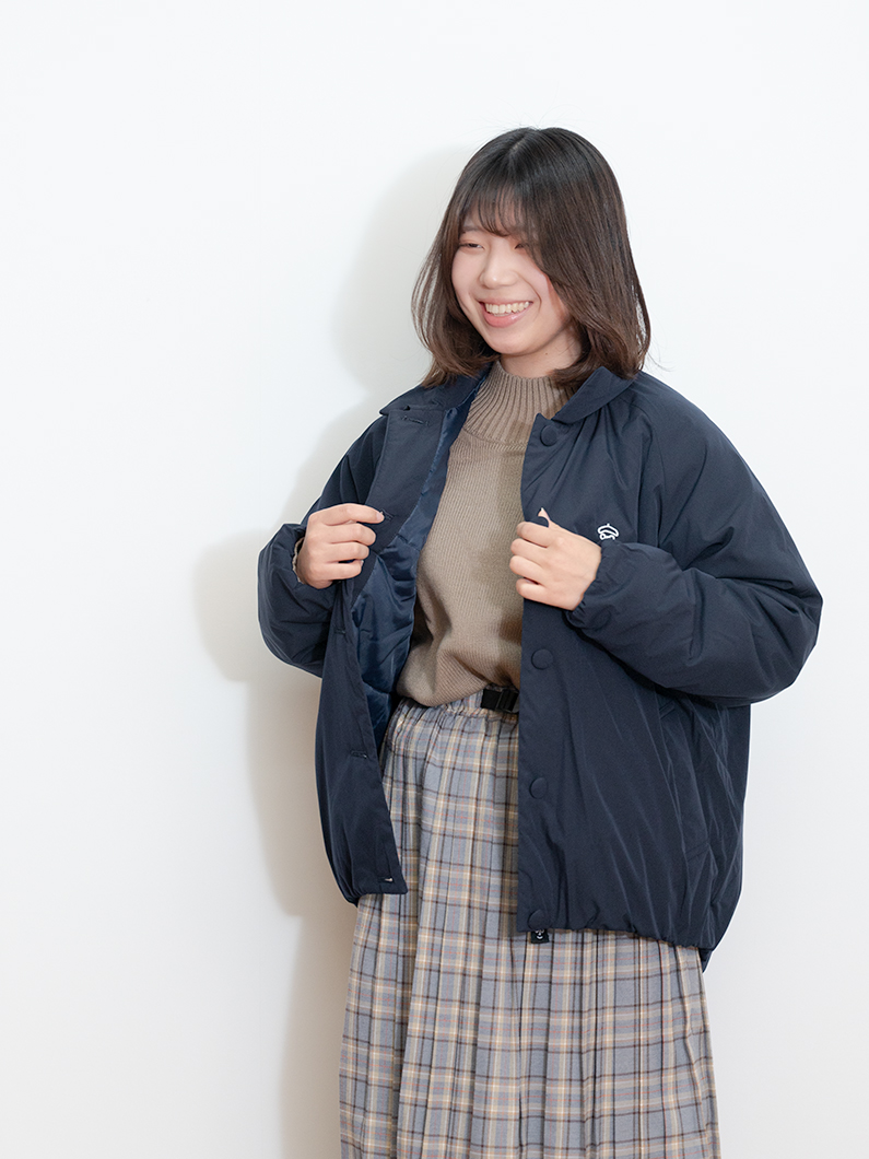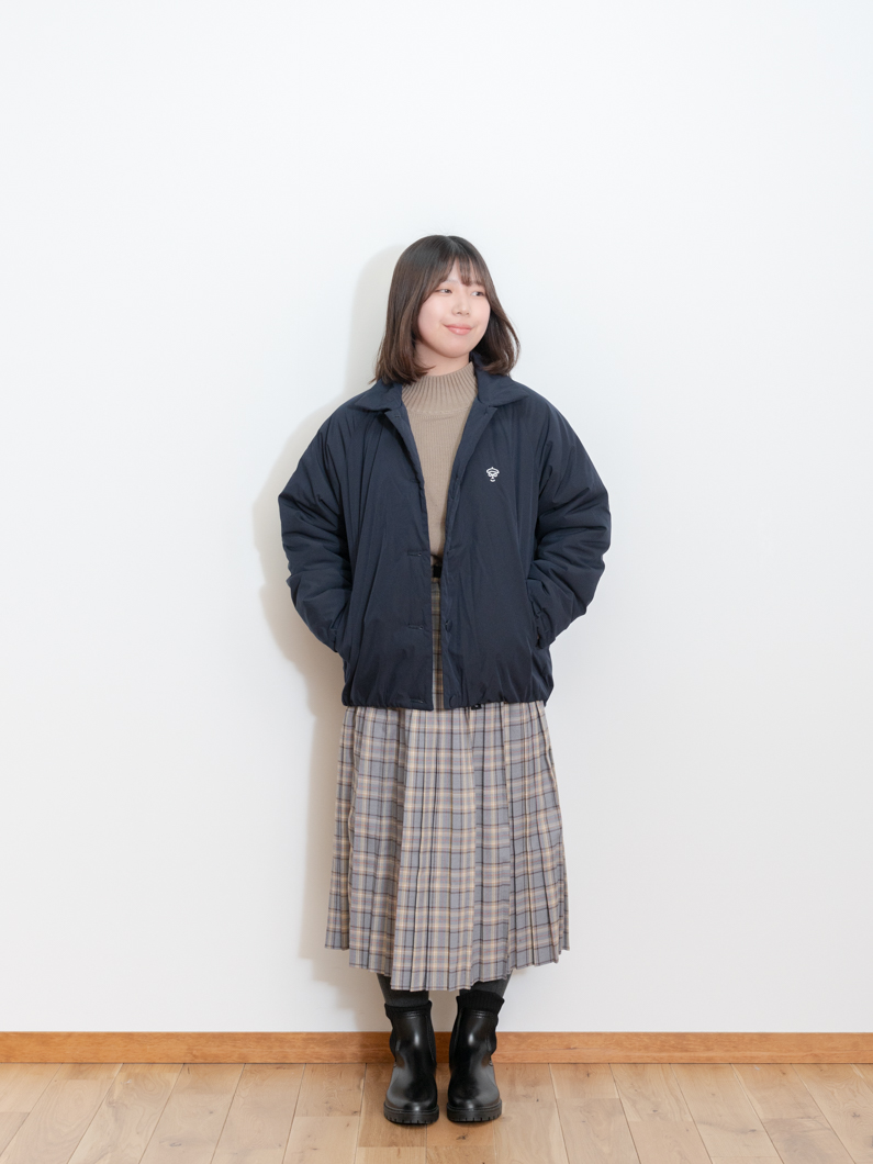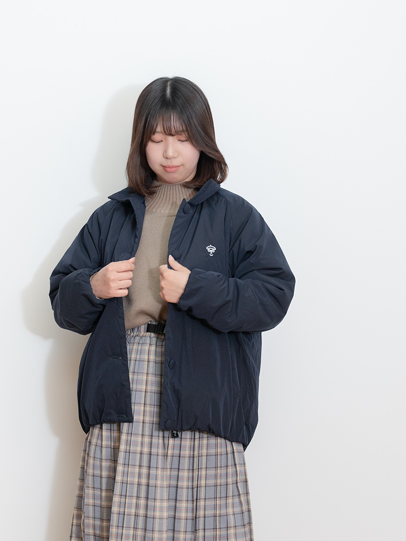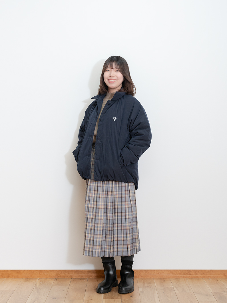 Soutien collar puff jacket NAVYを使用したコーディネート。