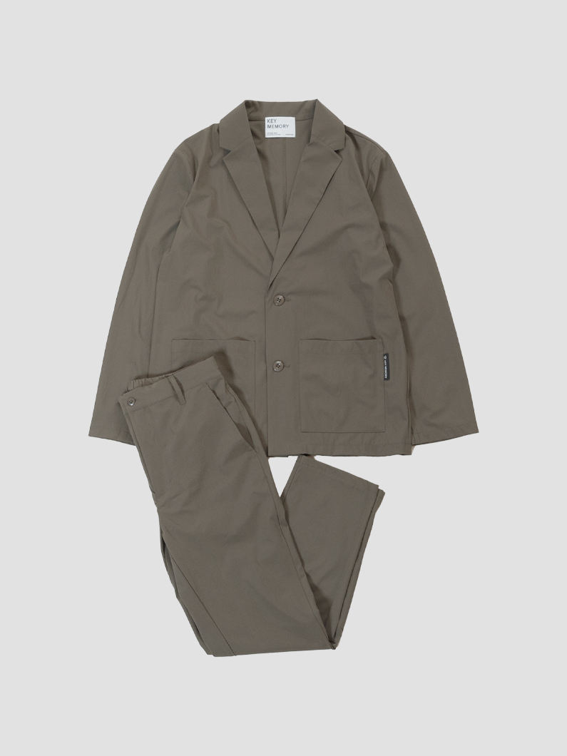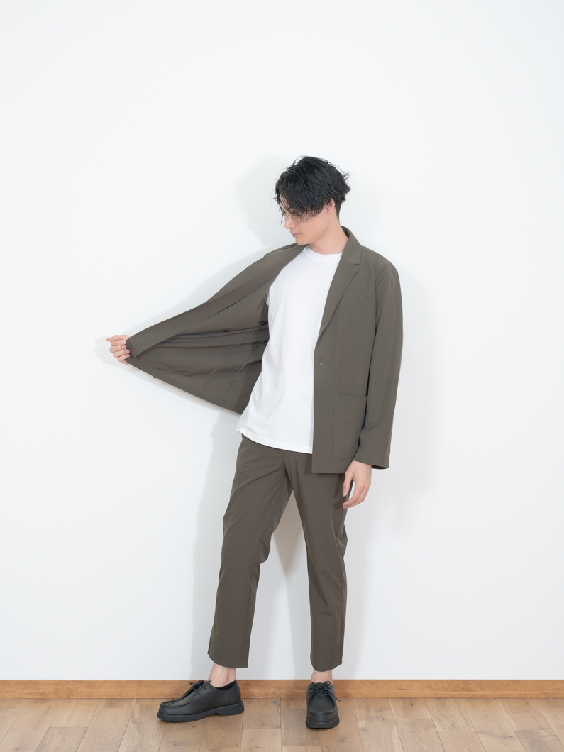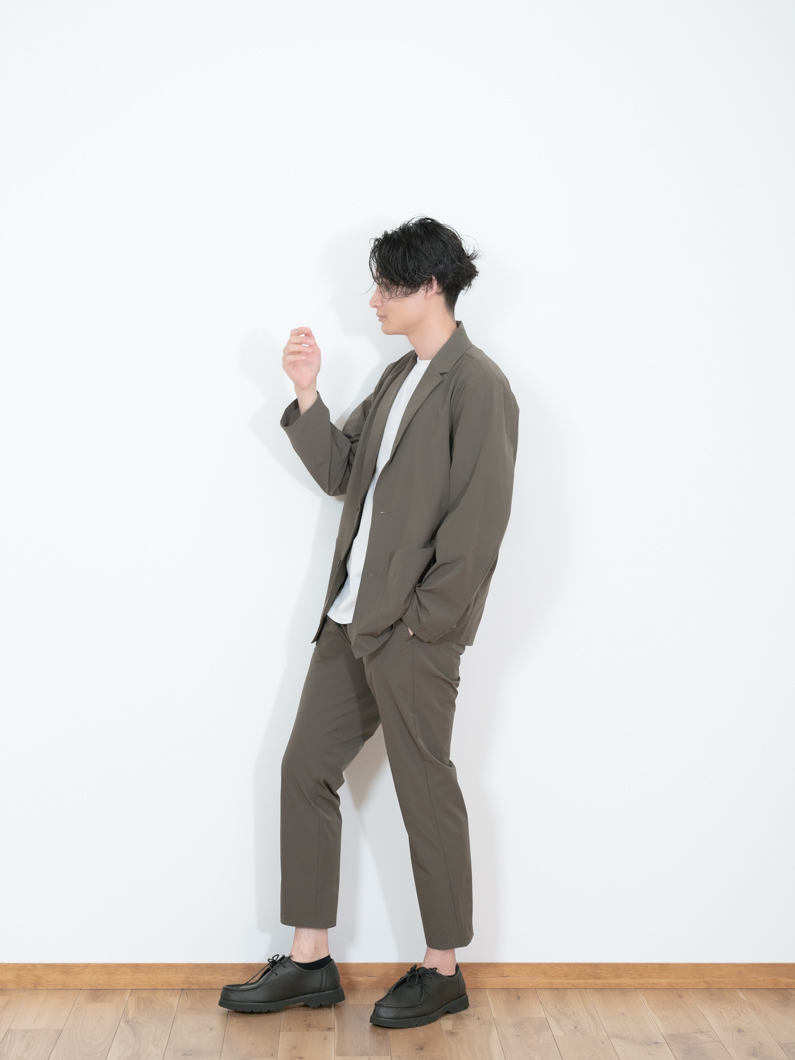 Stretch suit setup KHAKIを使用したコーディネート。
