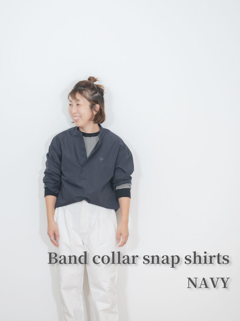 Band collar snap shirts NAVYを使用したコーディネート。 STAFFつぼの 153cm