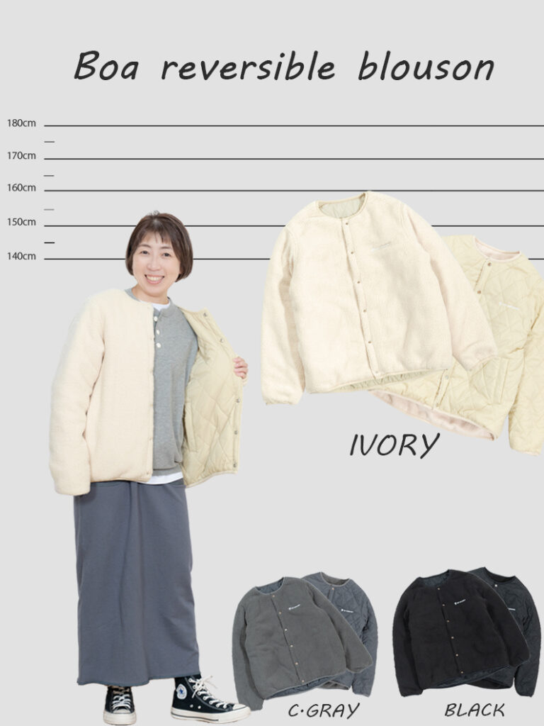 Boa reversible blouson IVORYを使用したコーディネート。 STAFFつぼの 153cm