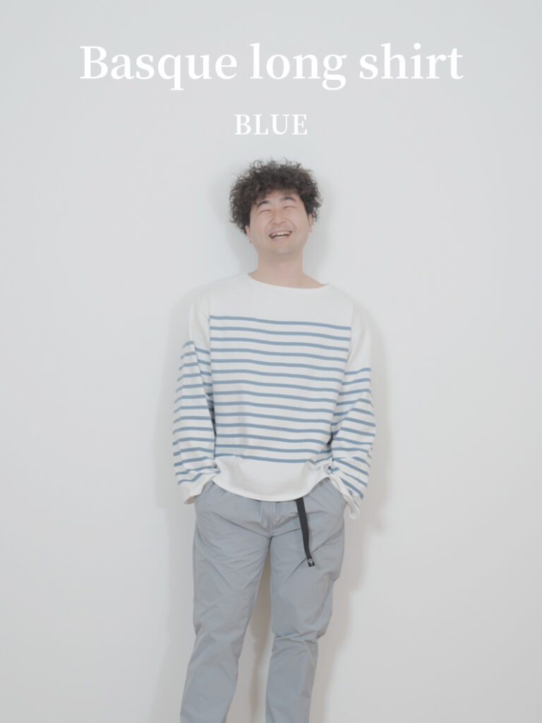 Basque long shirt BLUEを使用したコーディネート。 STAFF佐藤 166cm