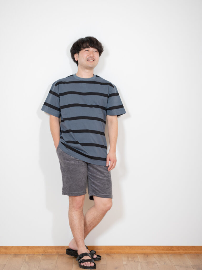 Border T-shirt BLUEGRAYを使用したコーディネート。 STAFF佐藤 166cm