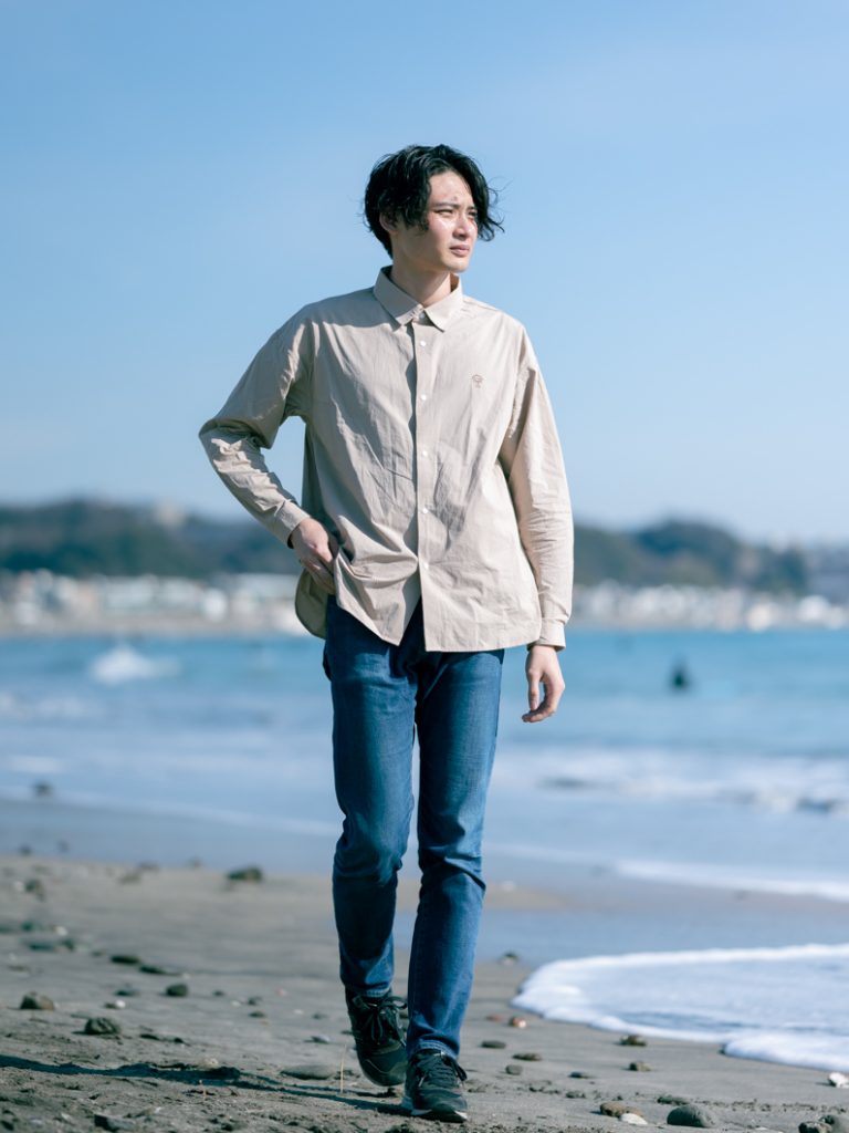 Snap button shirts BEIGEを使用したコーディネート。 STAFF村岡 181cm
