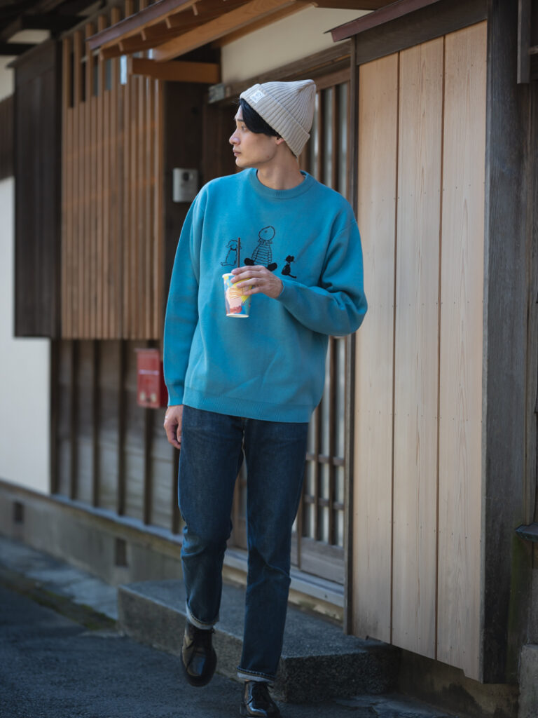 Time Knit BLUEを使用したコーディネート。 STAFF村岡 181cm