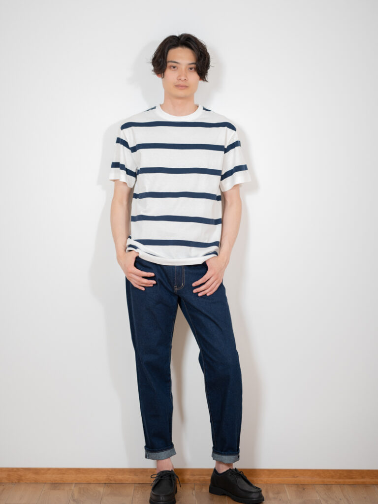 Border T-shirt WHITEを使用したコーディネート。 STAFF村岡 181cm